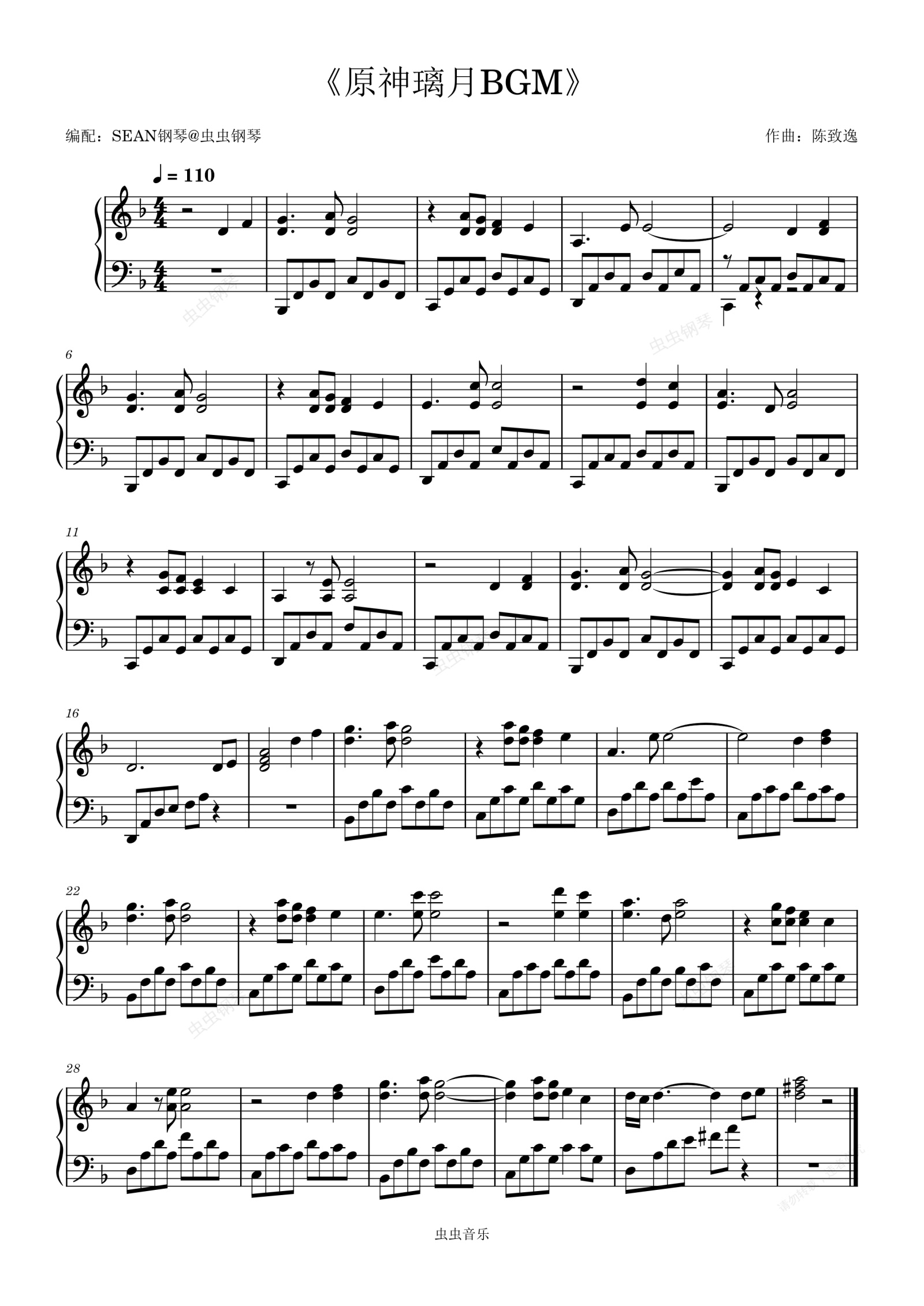钢琴谱:《原神璃月BGM》F调 『 SEAN 编配 』唯美演奏版