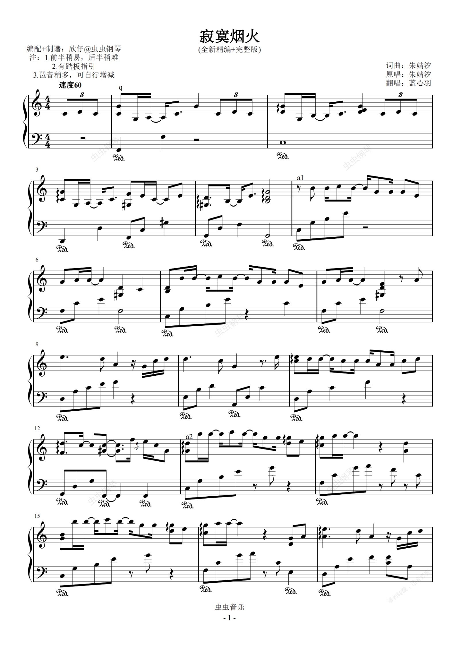 钢琴谱:蓝心羽-C《寂寞烟火》(全新精编+完整版)