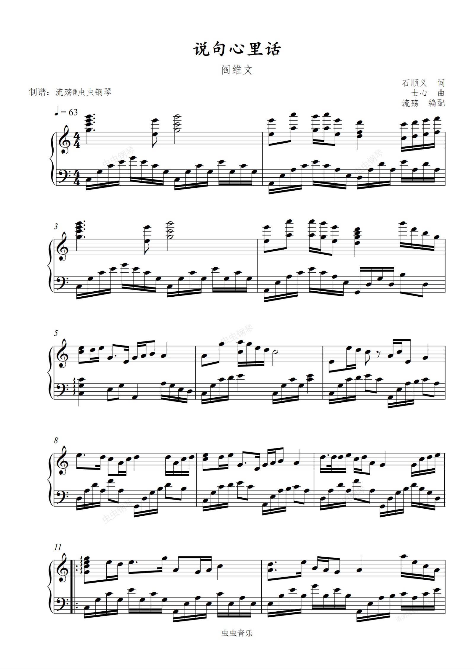 您的位置: 首页 > 钢琴谱库 > 说句心里话钢琴谱-阎维文