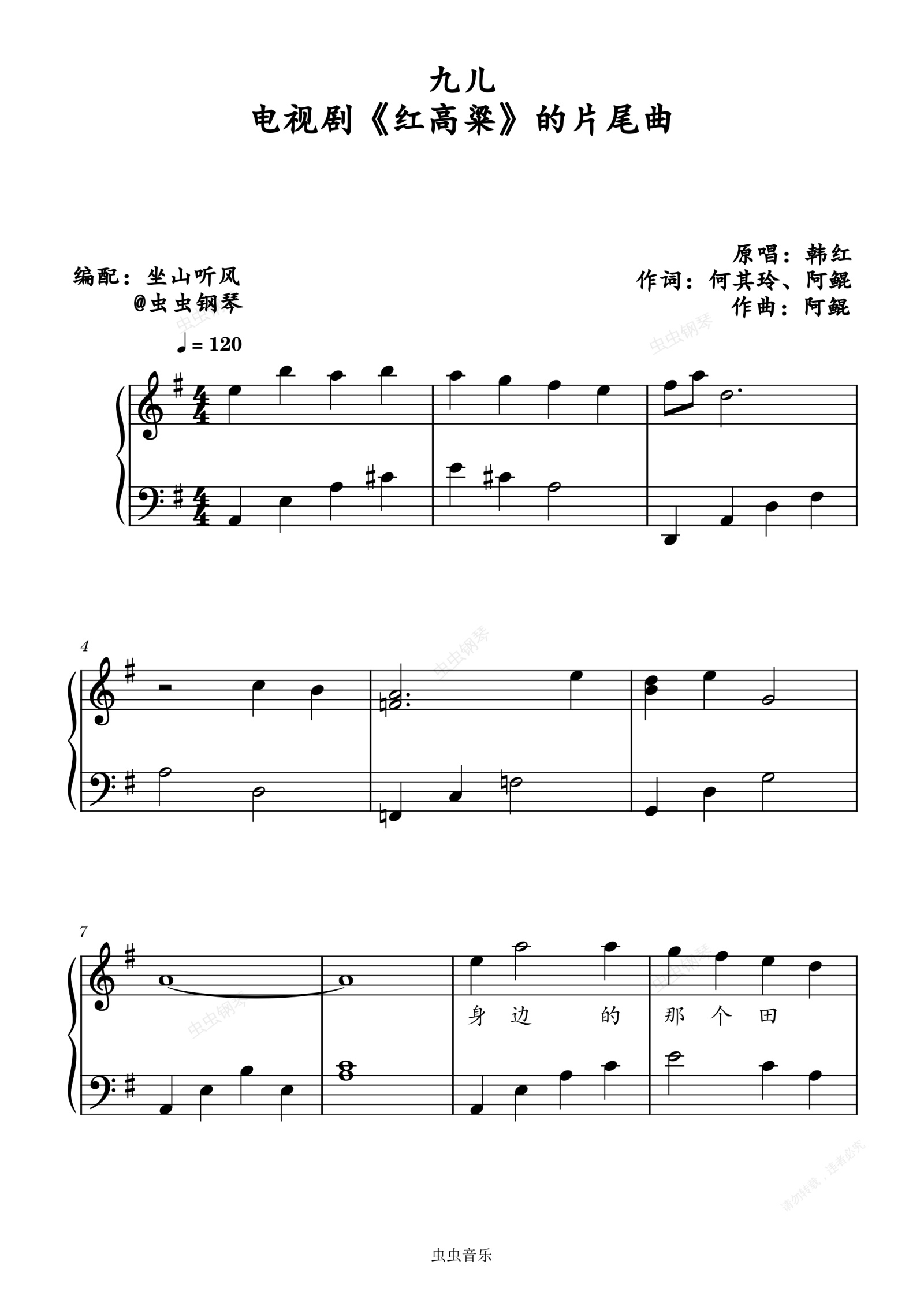 钢琴谱:九儿——《红高粱》片尾曲 唯美入门版【左音符+歌词】