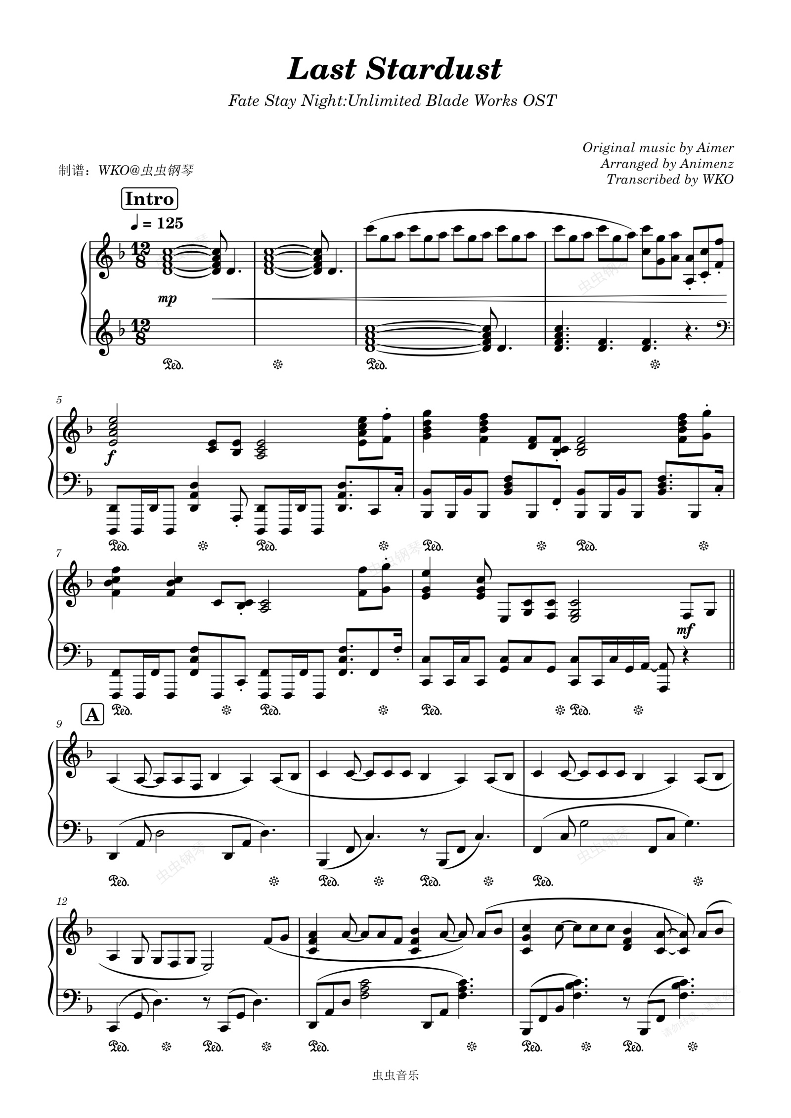 钢琴谱:Last Stardust A叔版