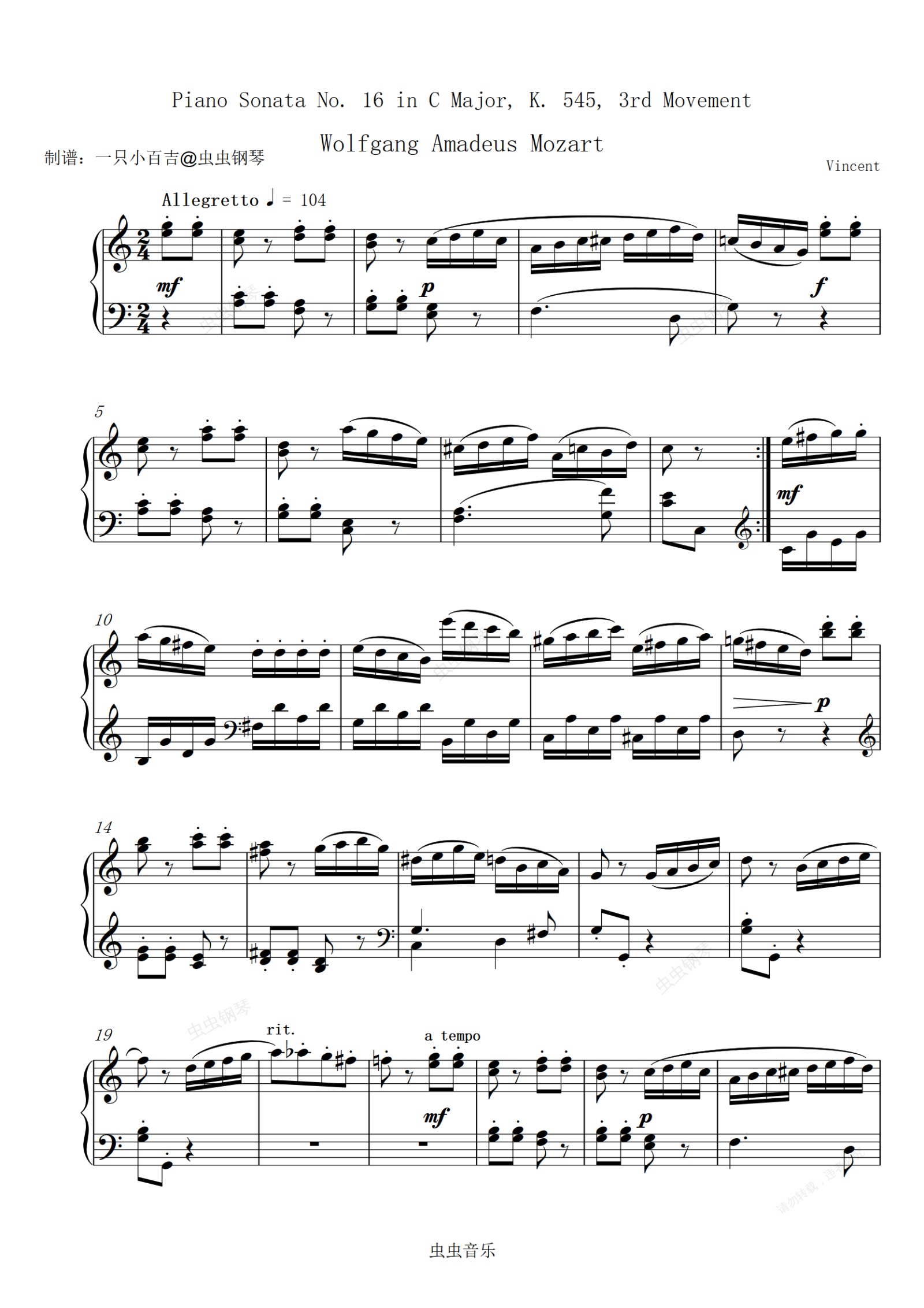 钢琴谱:No. 16 in C Major, K. 545, 3rd Movement 第三乐章