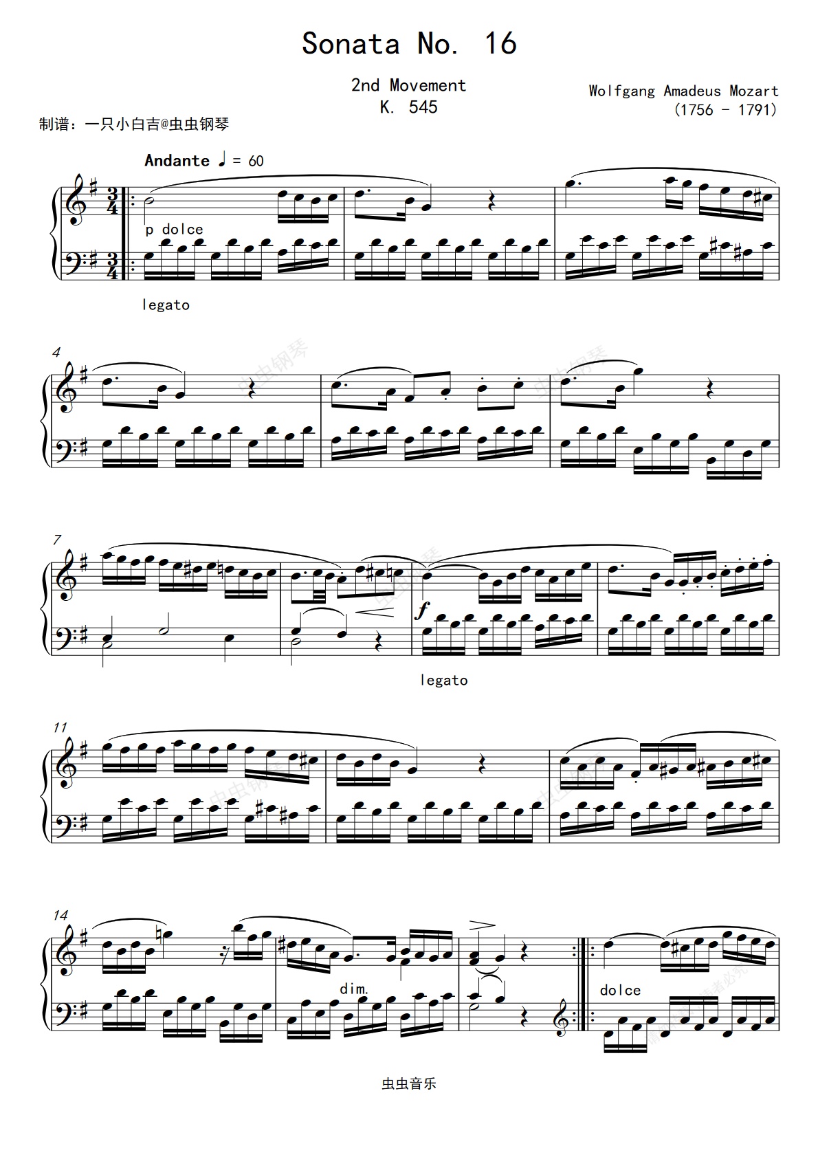 钢琴谱:No 16_K_545_Andante 第二乐章