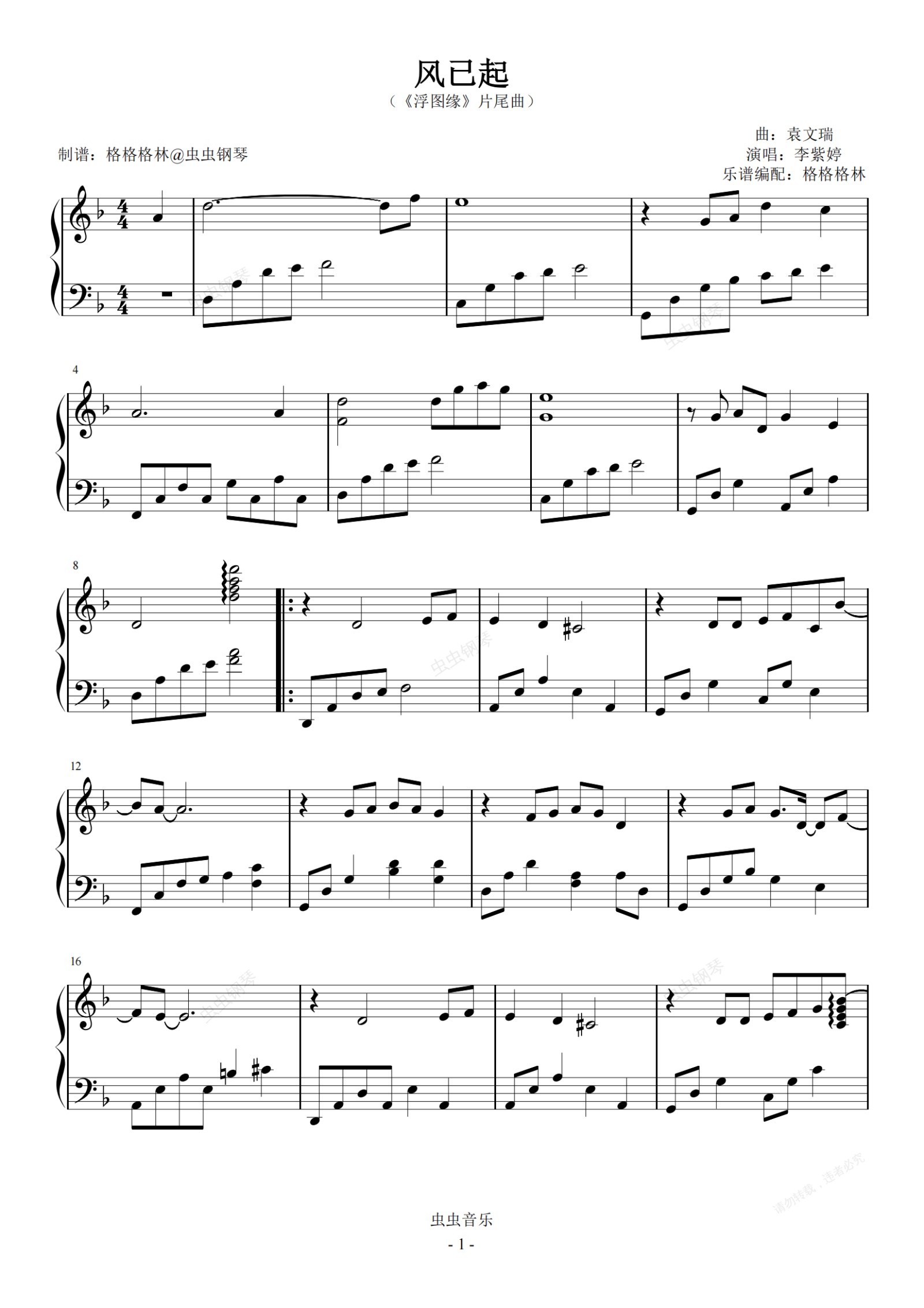 钢琴谱:风已起-李紫婷(《浮图缘》片尾曲)