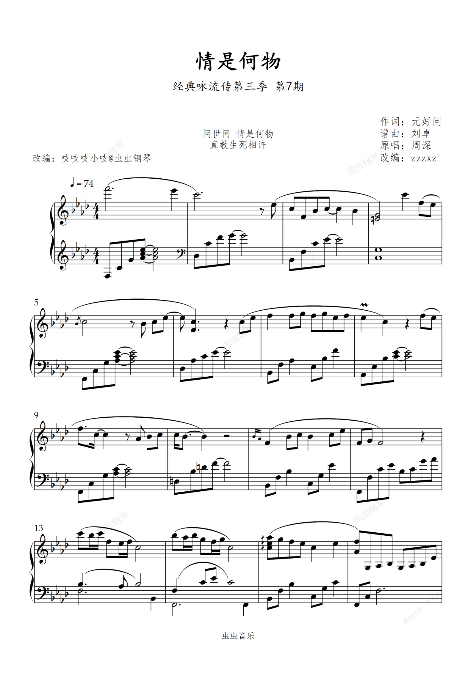 钢琴谱:情是何物-f-周深 【中级难度】经典咏流传原调 吱吱编配
