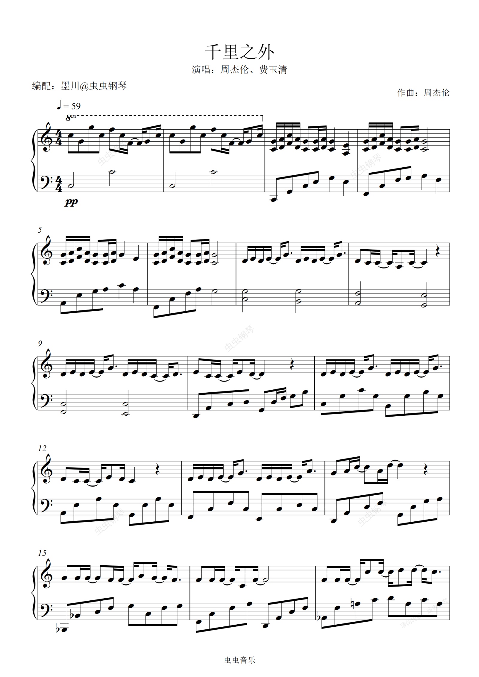 钢琴谱:千里之外—周杰伦、费玉清—C调编配