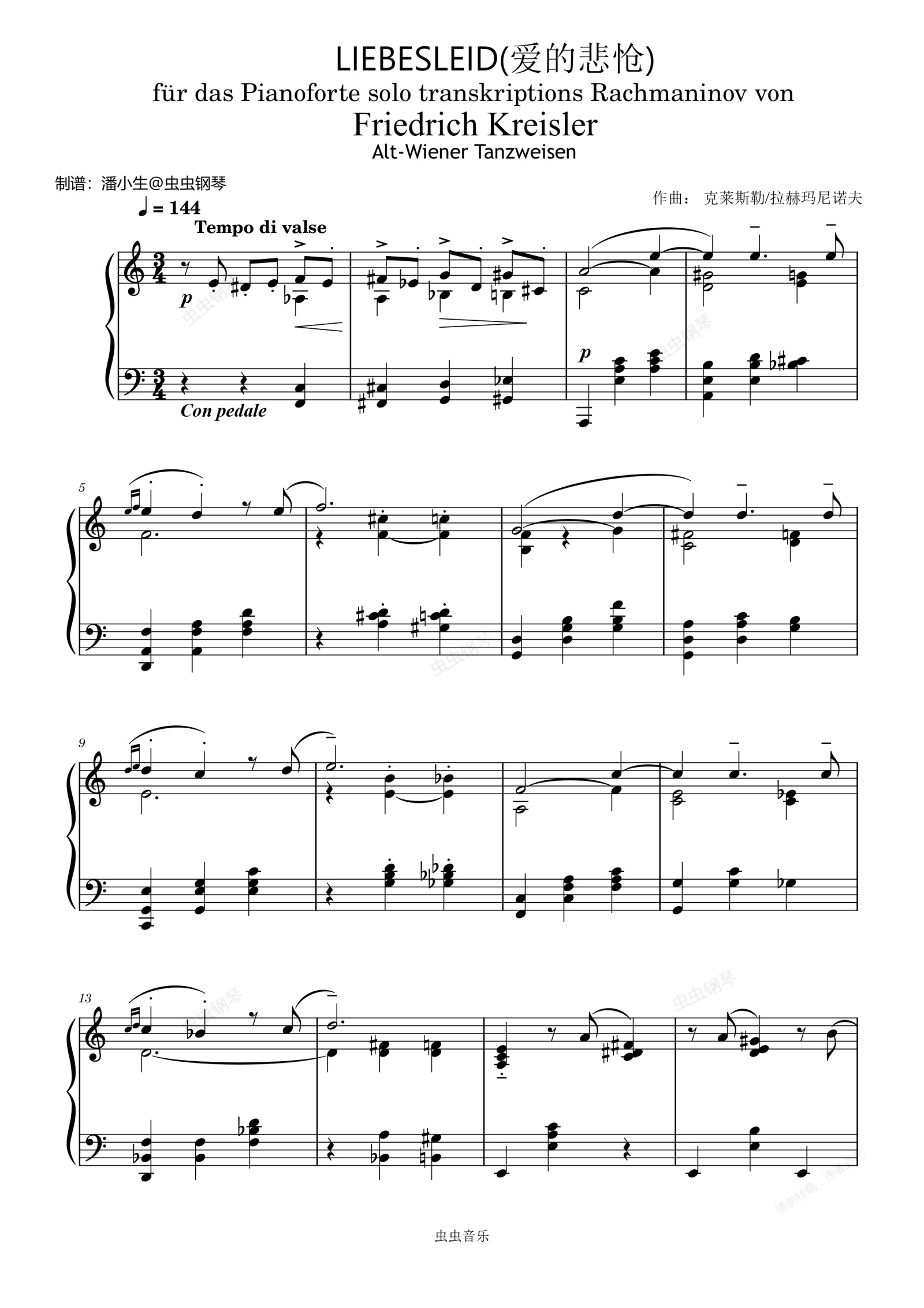 钢琴谱:Liebesleid,爱的悲怆,克莱斯勒/拉赫马尼若夫 改编版本,独奏版,Kreisler/Rachmaninoff, "Alt-Wiener Tanzweisen"