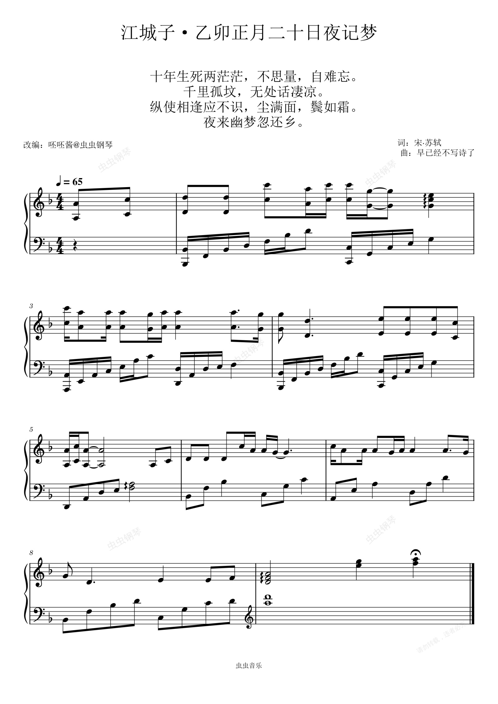 钢琴谱:江城子·乙卯正月二十日夜记梦【独奏改编版】(片段)-早已经不写诗了