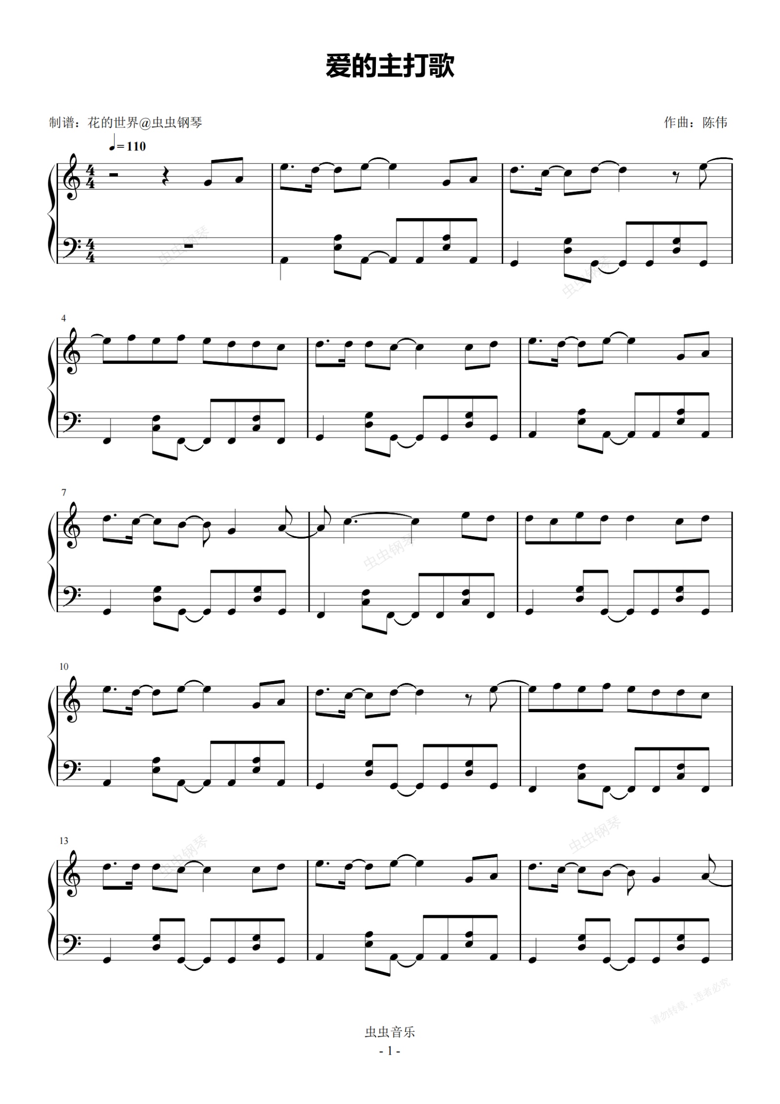 钢琴谱:爱的主打歌 C调简易版 萧亚轩