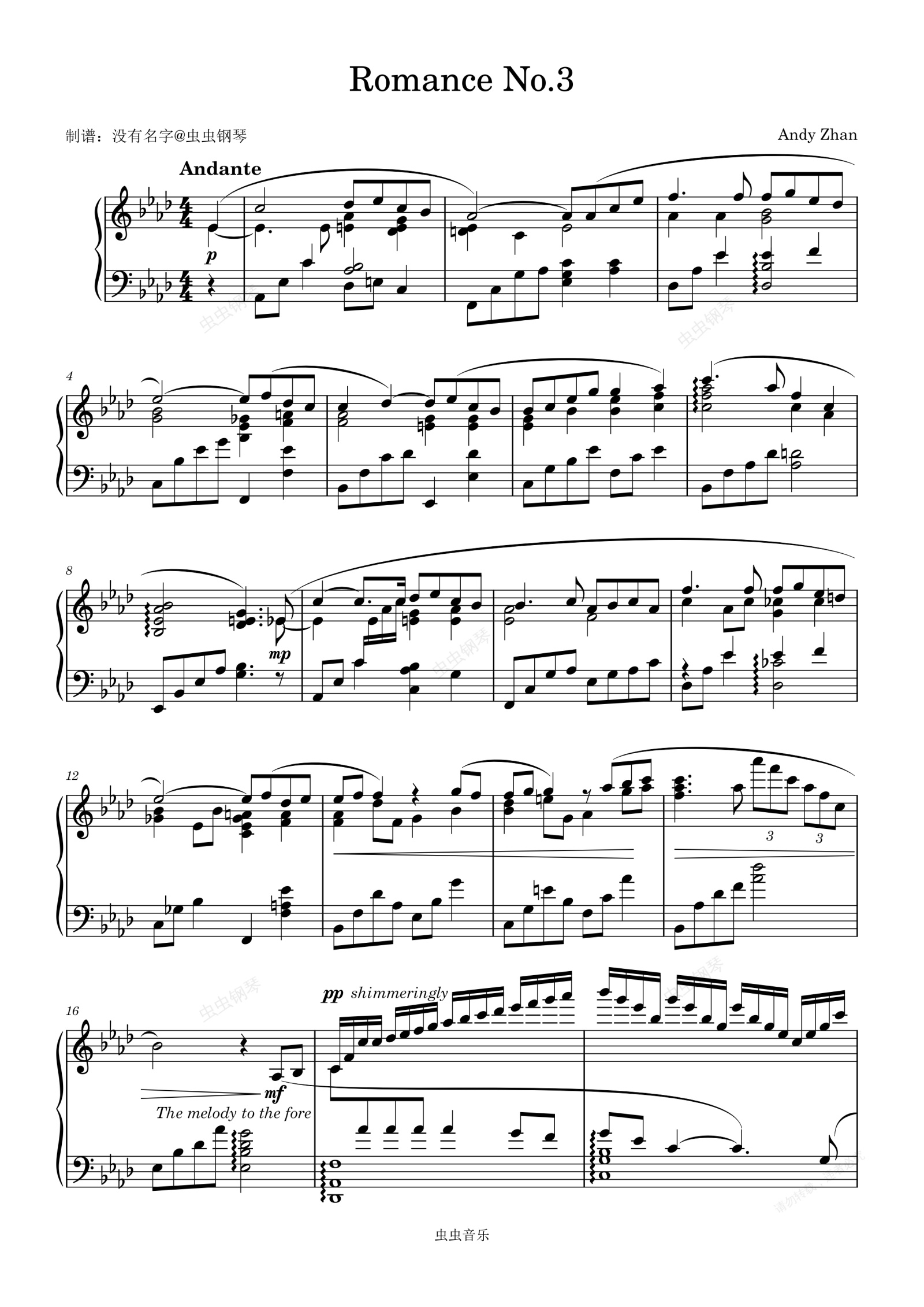 钢琴谱:Andy Zhan - 浪漫曲 第三号(Romance III)