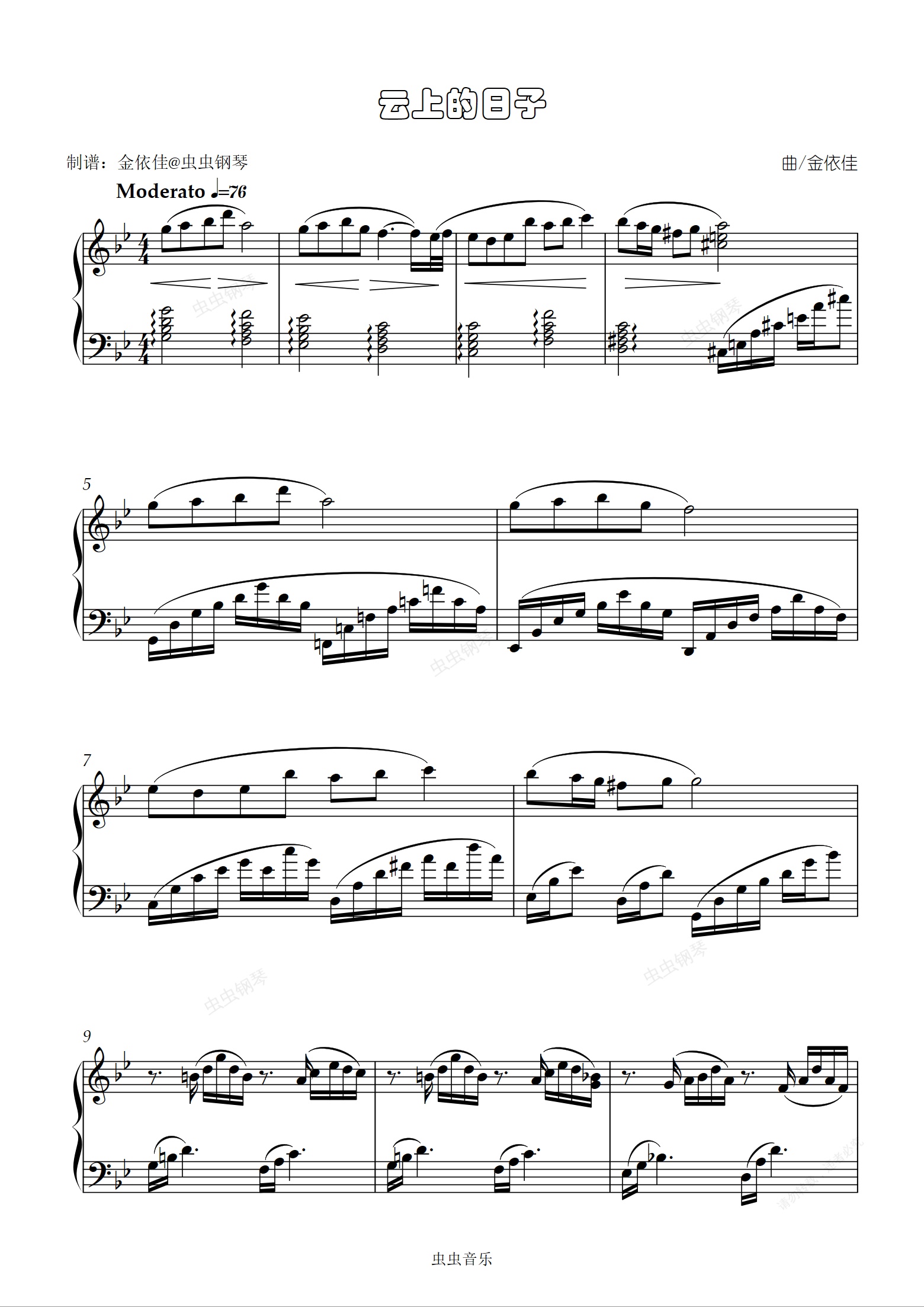 钢琴谱:《云上的日子》【抒情唯美】