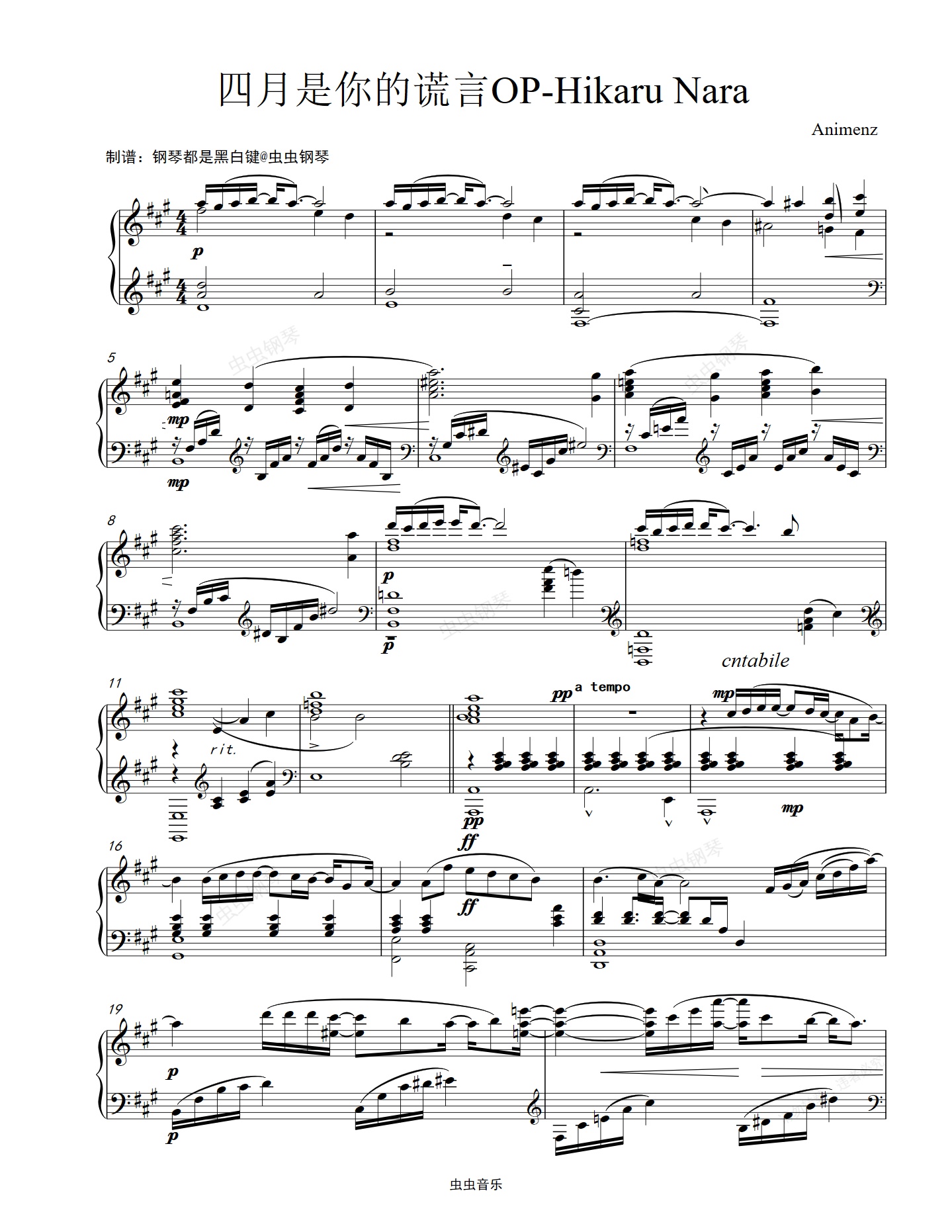 【Animenz版】四月是你的谎言OP-Hikaru Nara