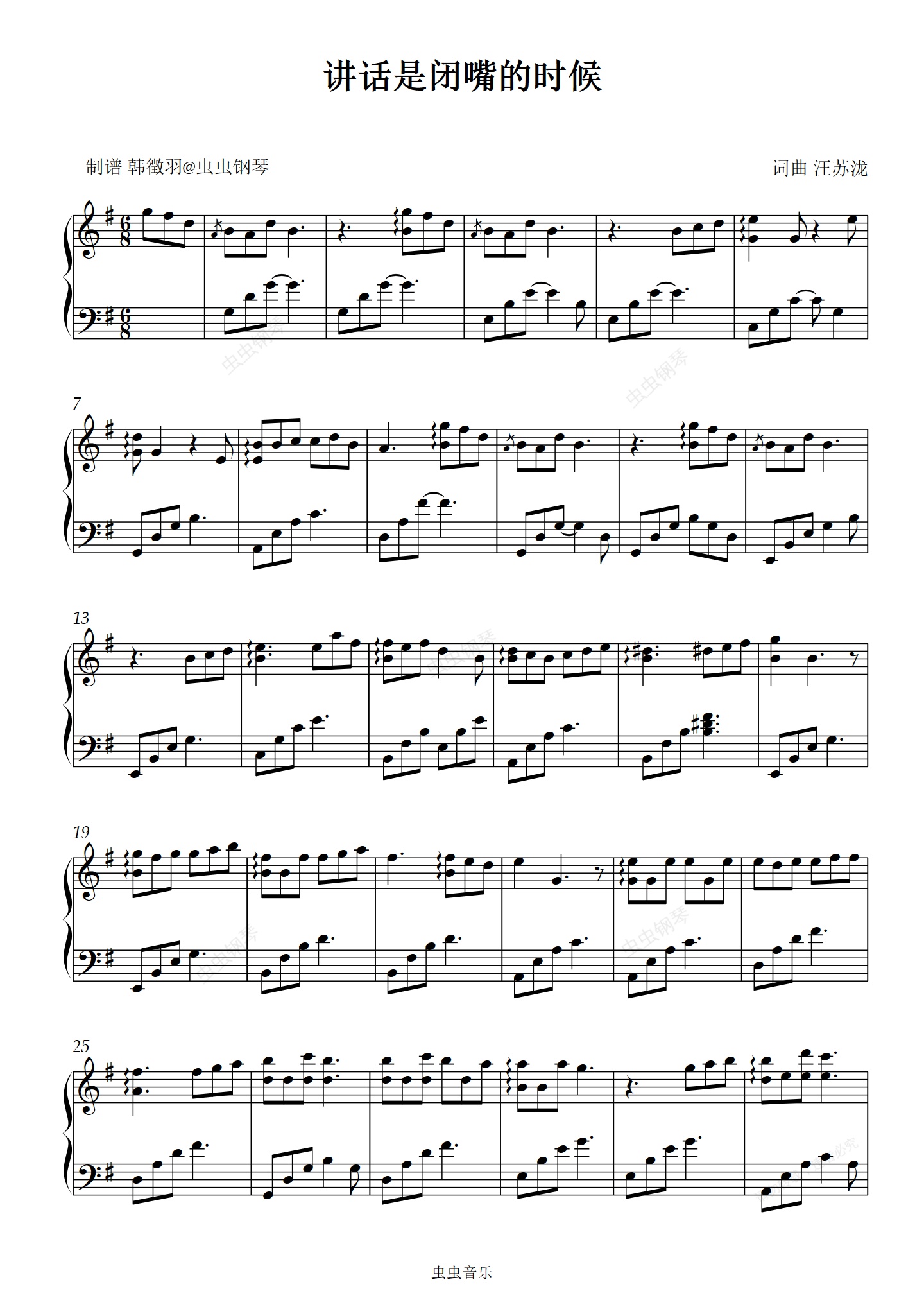 钢琴谱:讲话是闭嘴的时候 汪苏泷 G调