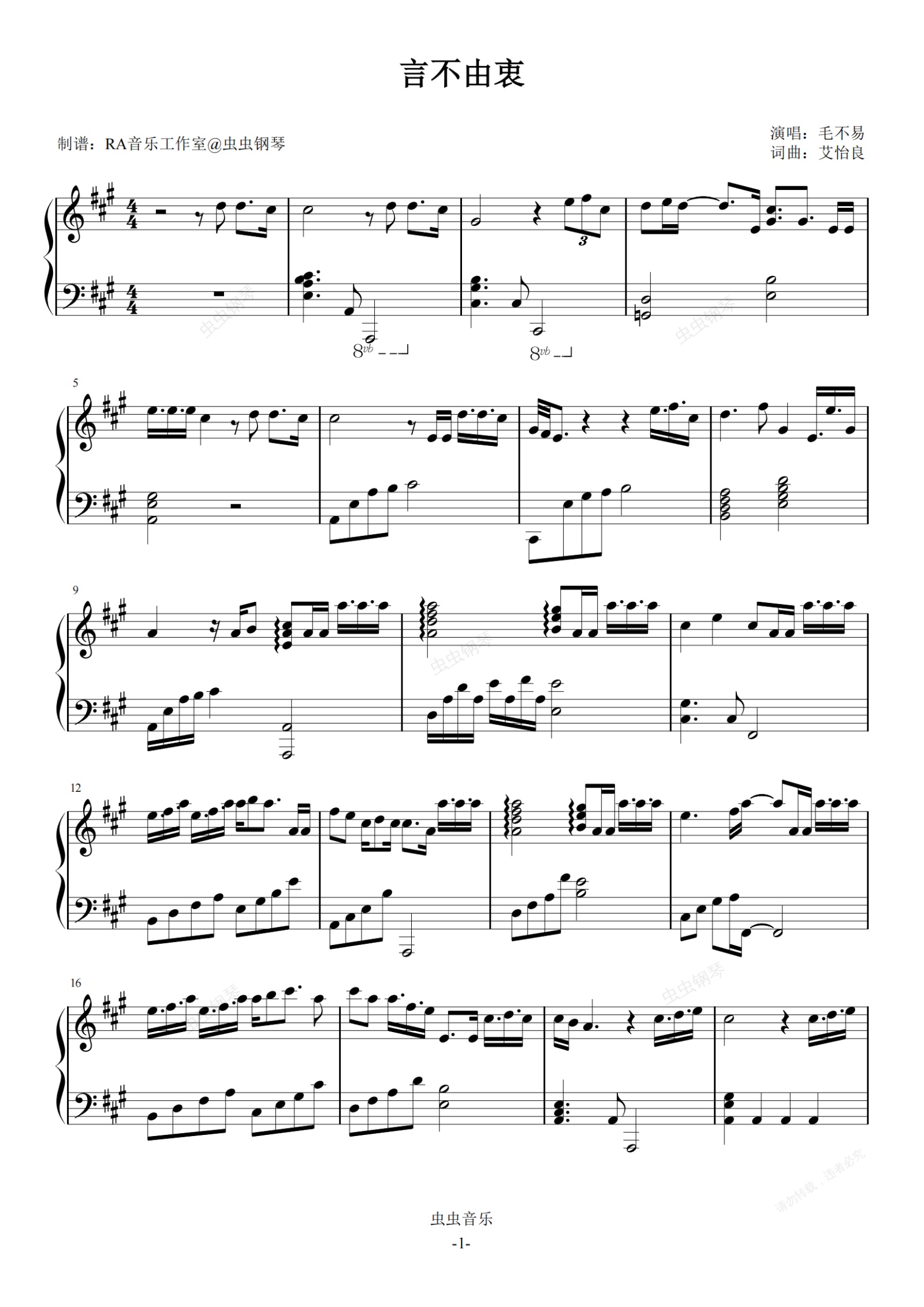 钢琴谱:《言不由衷》-毛不易-钢琴演奏谱-深情版