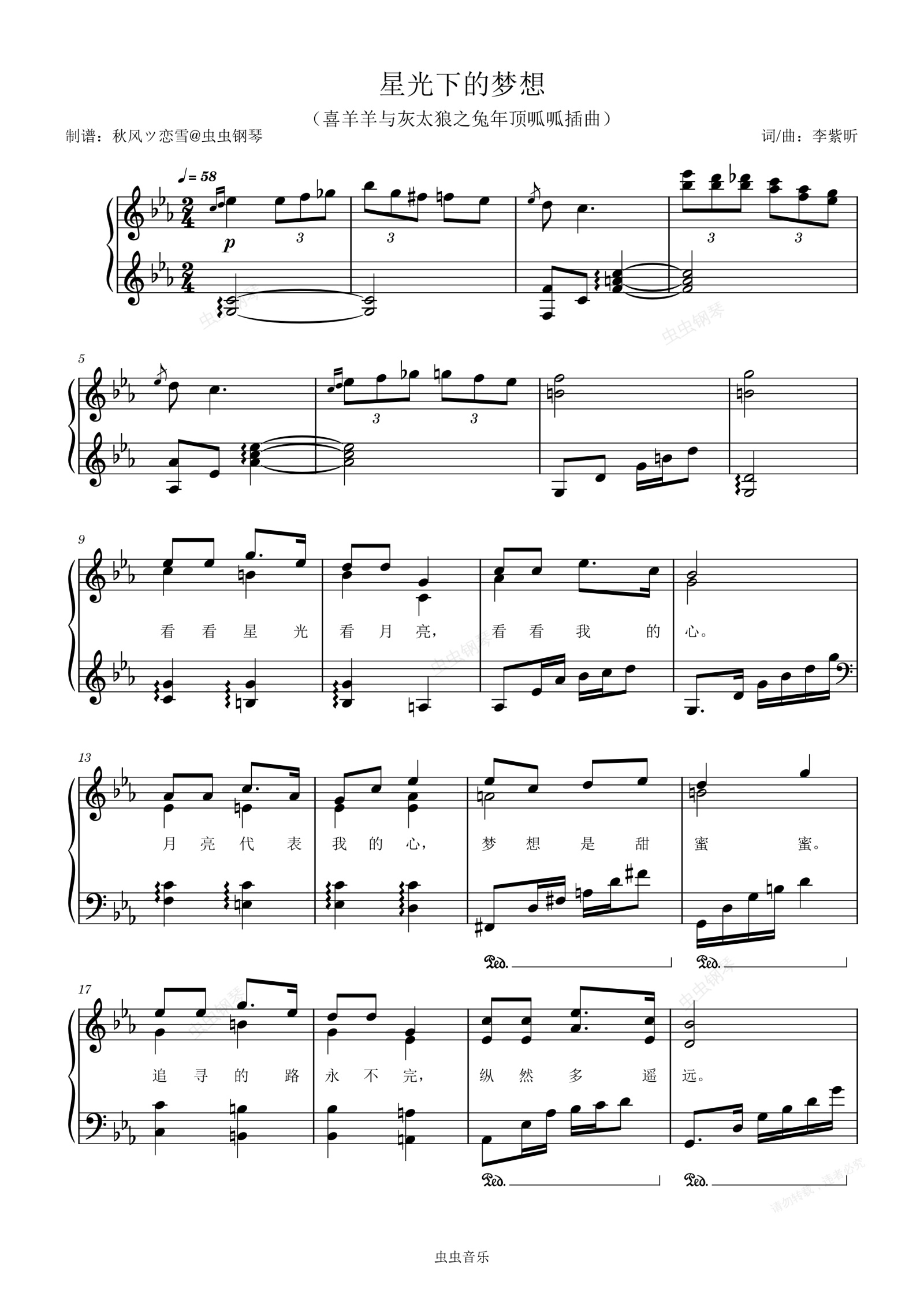 钢琴谱:星光下的梦想(喜羊羊与灰太狼3兔年顶呱呱插曲)