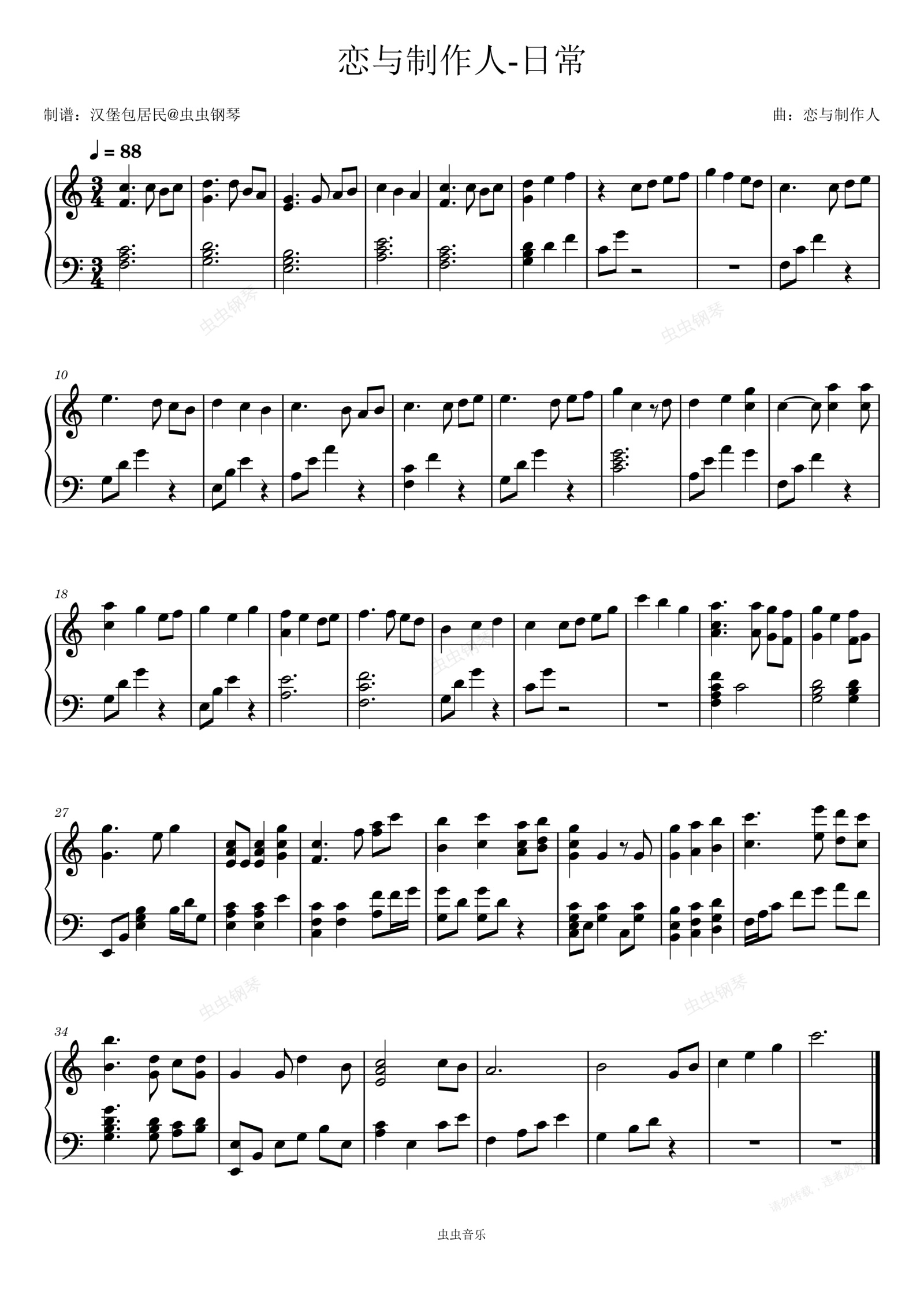 钢琴谱:恋与制作人-日常