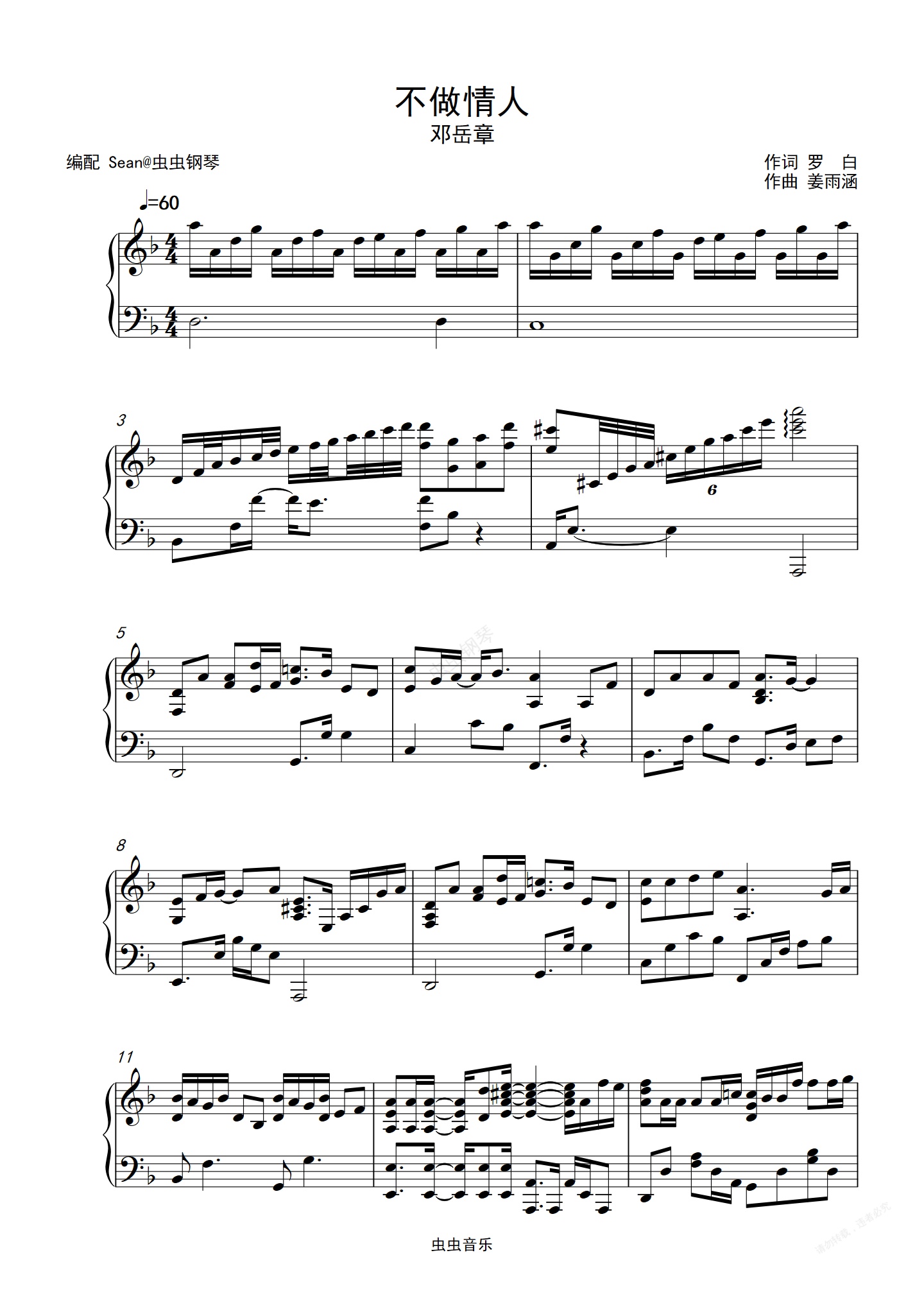 钢琴谱:邓岳章《不做情人》高度还原版-Sean编配