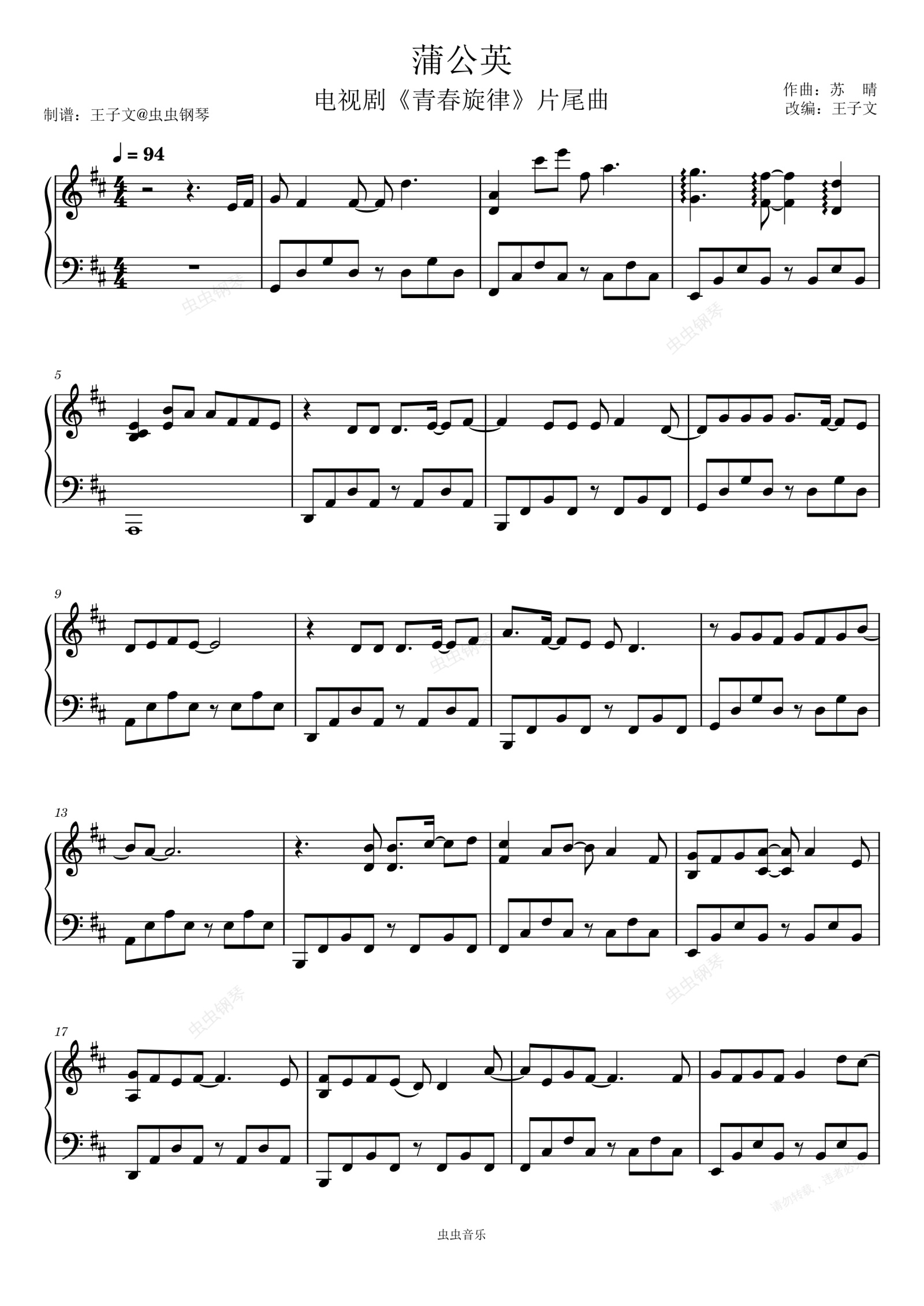 钢琴谱:蒲公英-电视剧《青春旋律》片尾曲