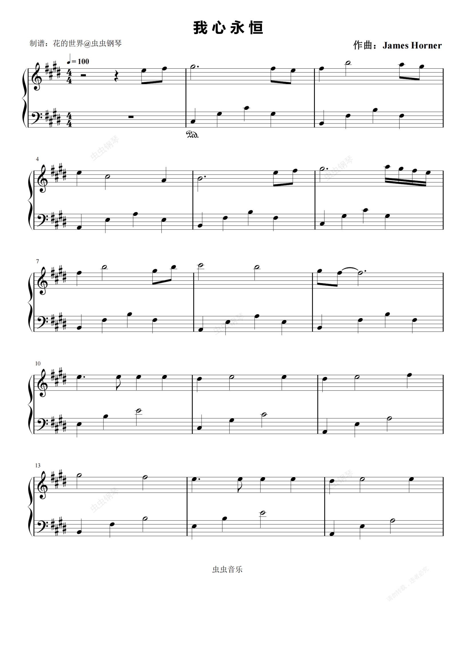 钢琴谱:My Heart Will Go On 我心永恒 原调简易版本 泰坦尼克号