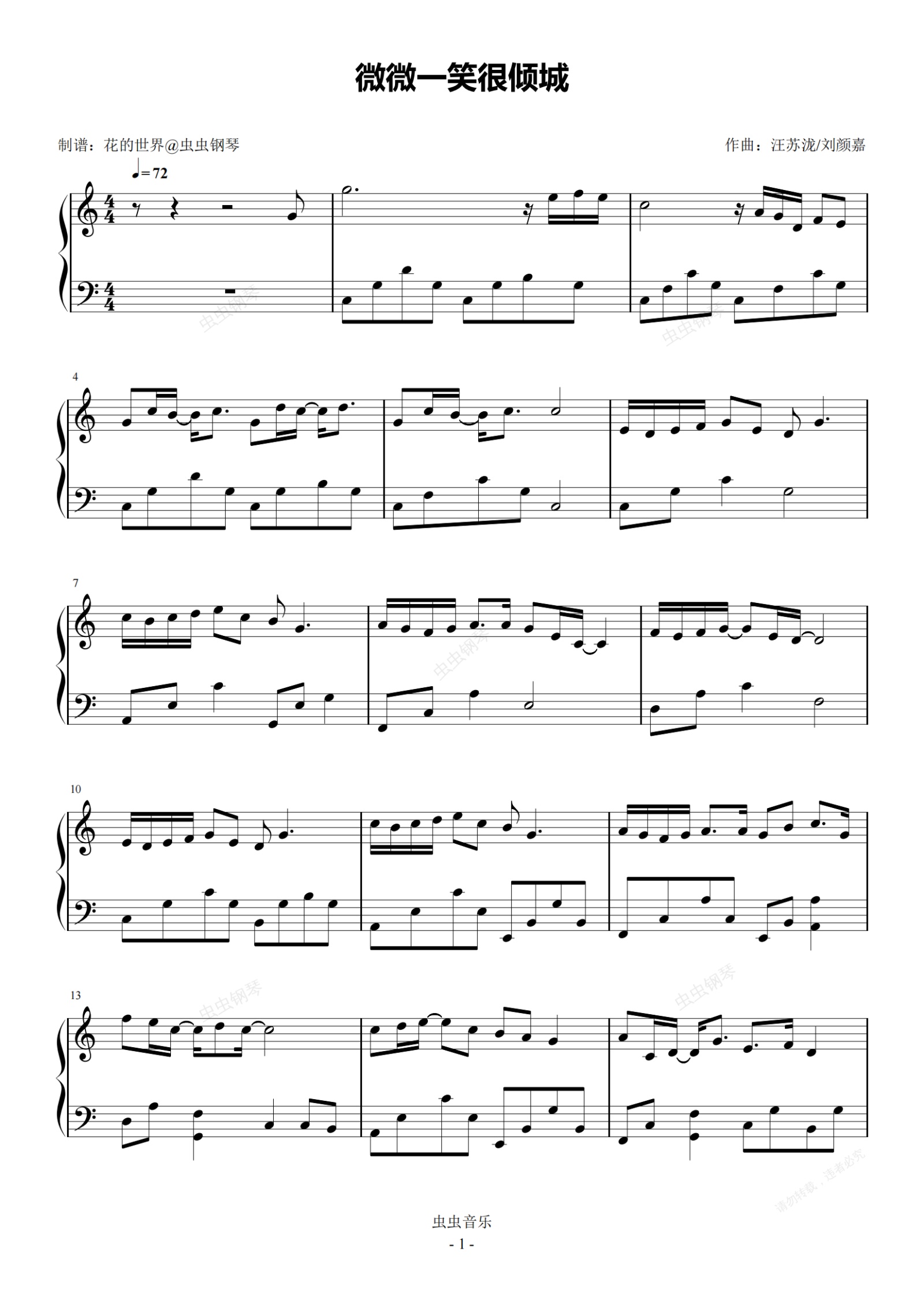 钢琴谱:微微一笑很倾城 C调简易版 杨洋