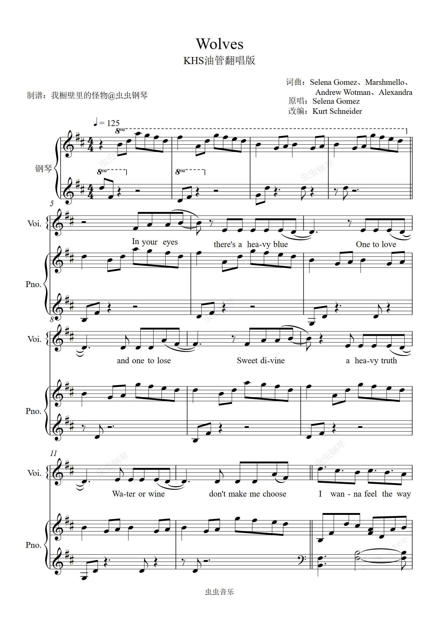 钢琴谱:《Wolves》完整弹唱谱(油管KHS翻唱版)
