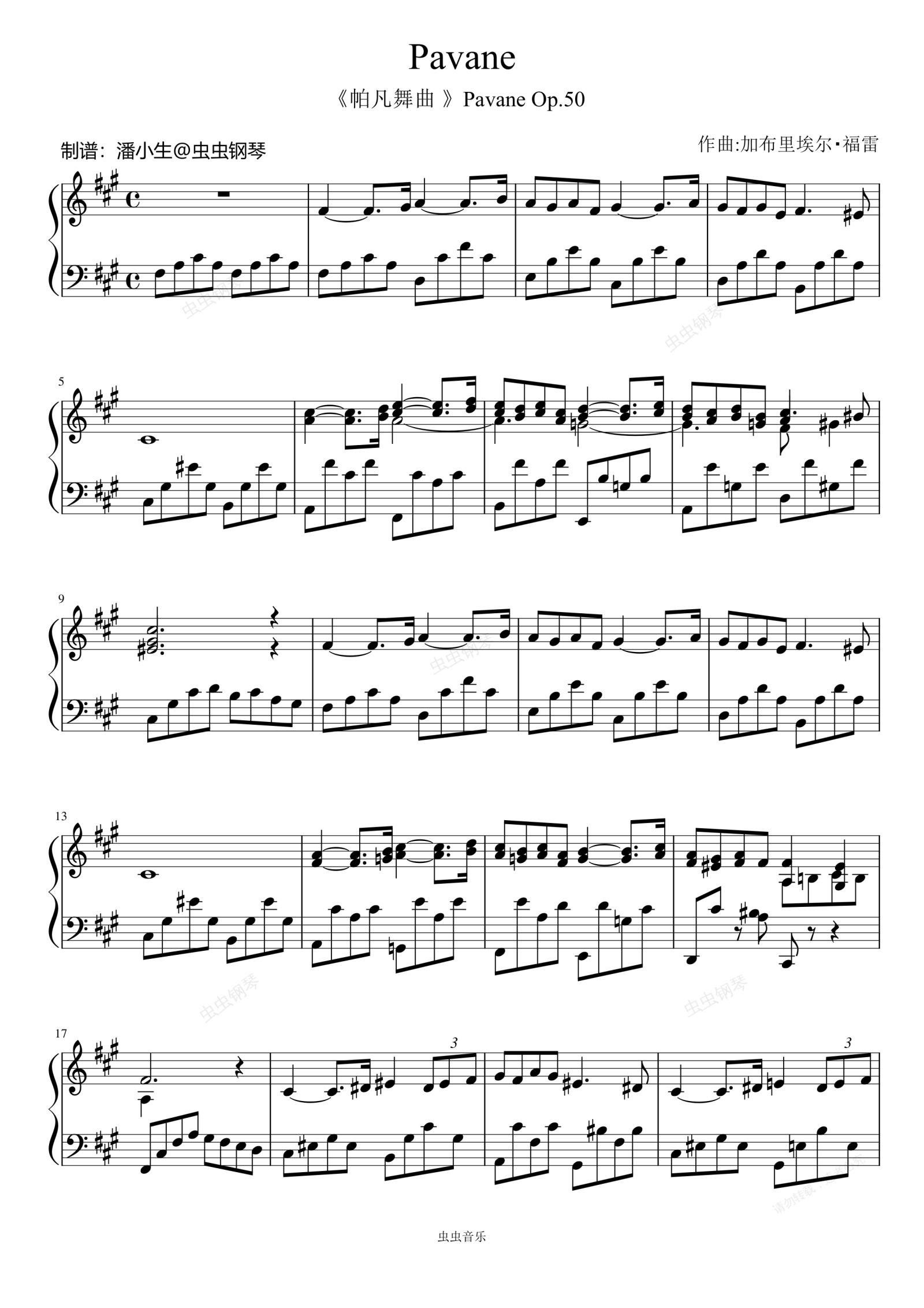 钢琴谱:《帕凡舞曲》Pavane (op.50),原版钢琴独奏谱,加布里埃尔·福雷,Fauré, Gabriel