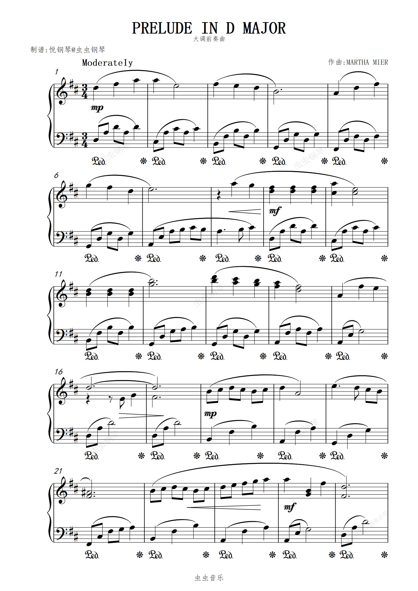 钢琴谱:大调前奏曲//PRELUDE IN D MAJOR【治愈小曲】