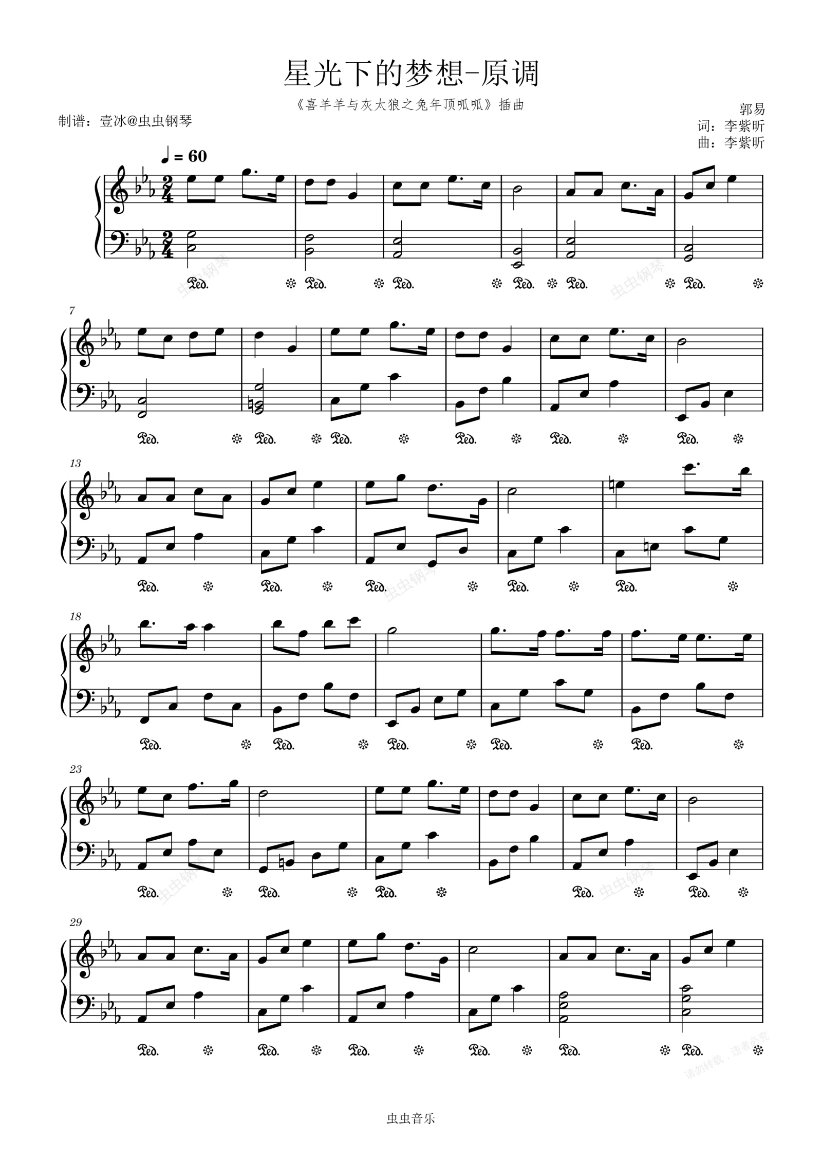 钢琴谱:星光下的梦想//《喜羊羊与灰太狼之兔年顶呱呱》插曲-原调