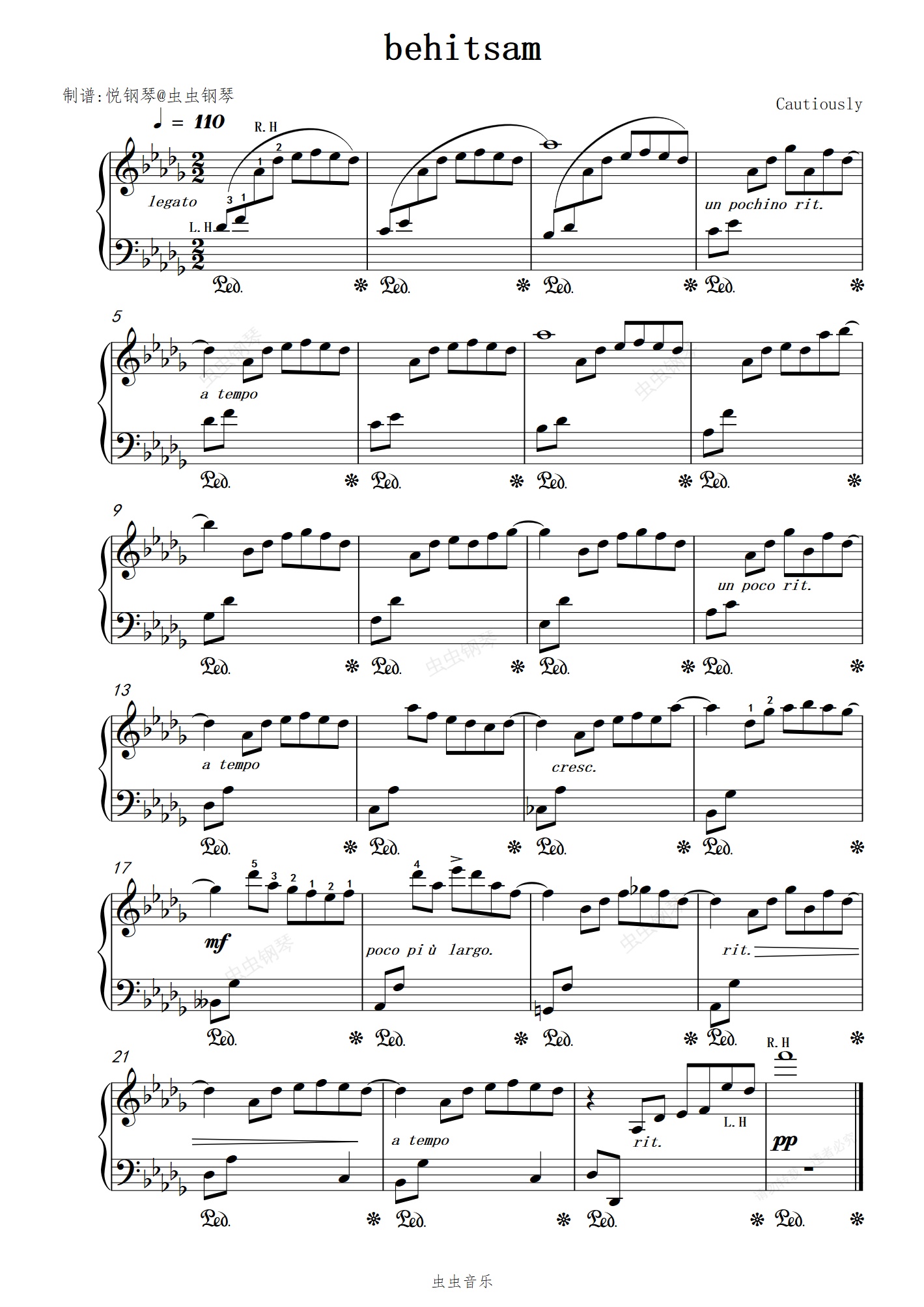 钢琴谱:behitsam【治愈小曲】
