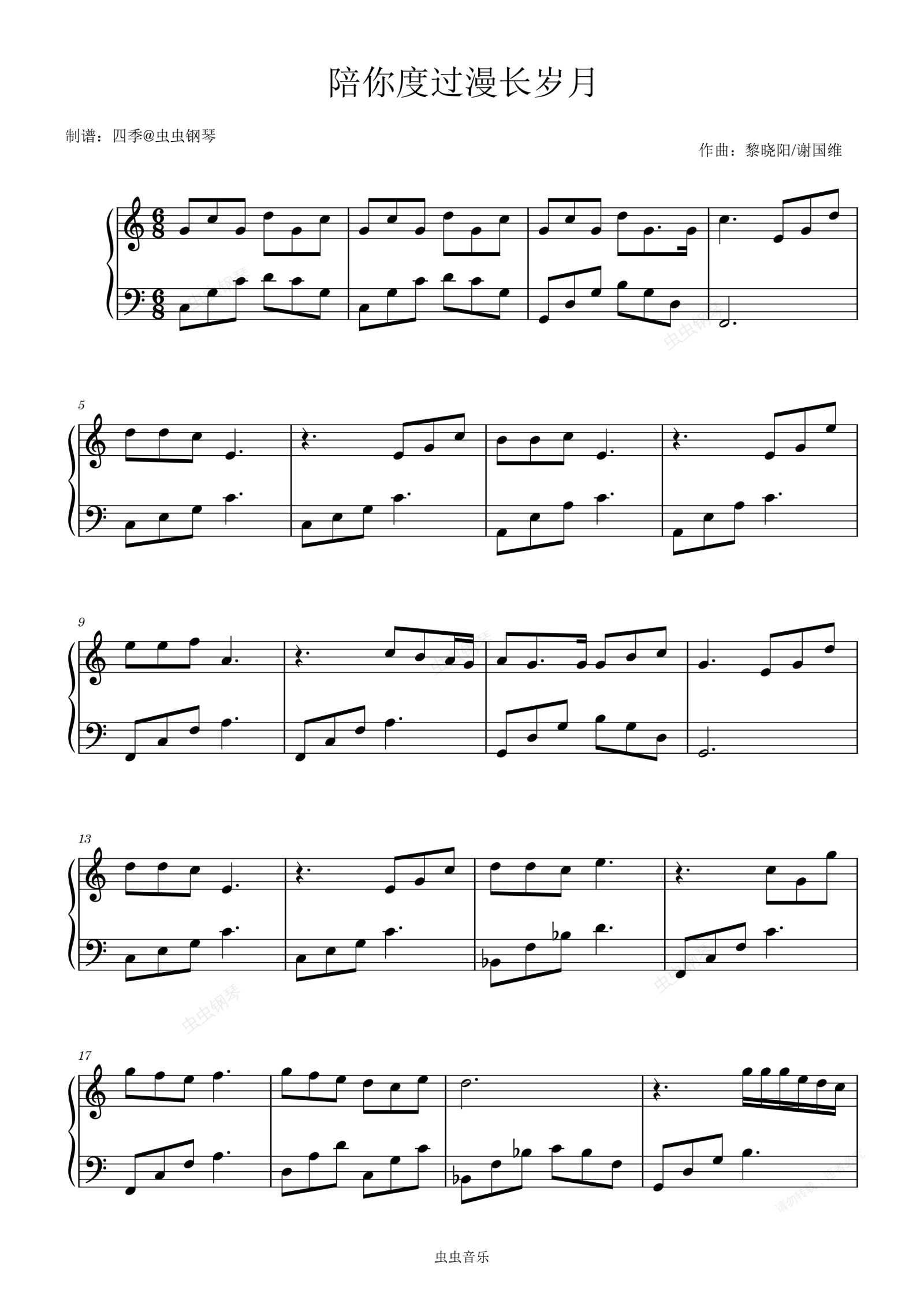 钢琴谱:陪你度过漫长岁月