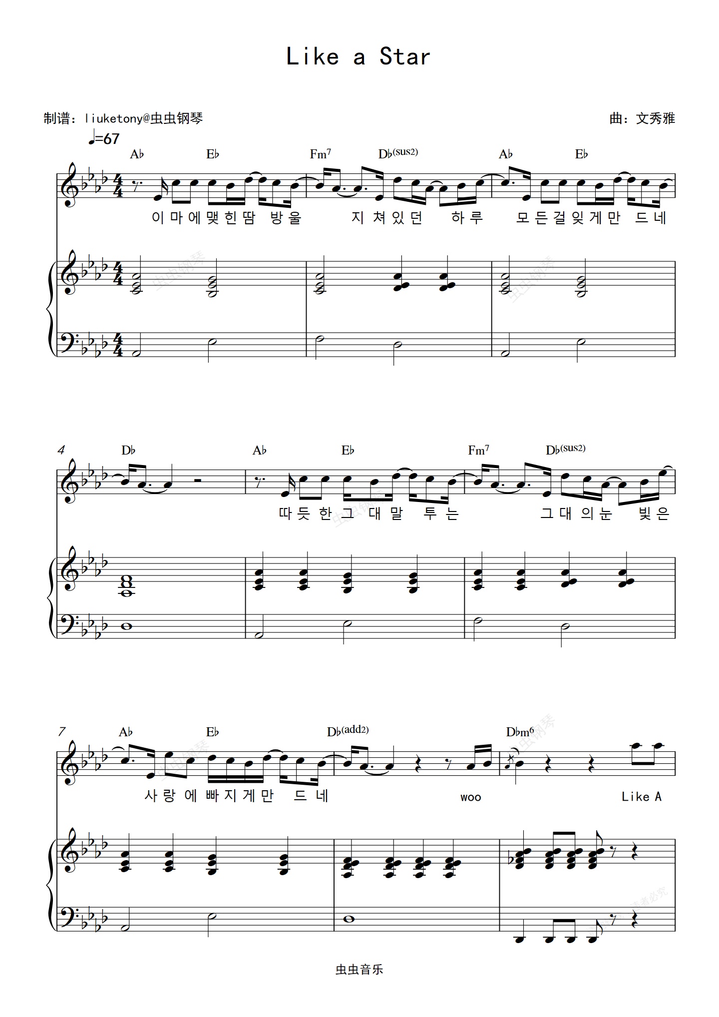 钢琴谱:《Like a Star》文秀雅 (财阀家的小儿子)电视剧插曲 钢琴伴奏谱
