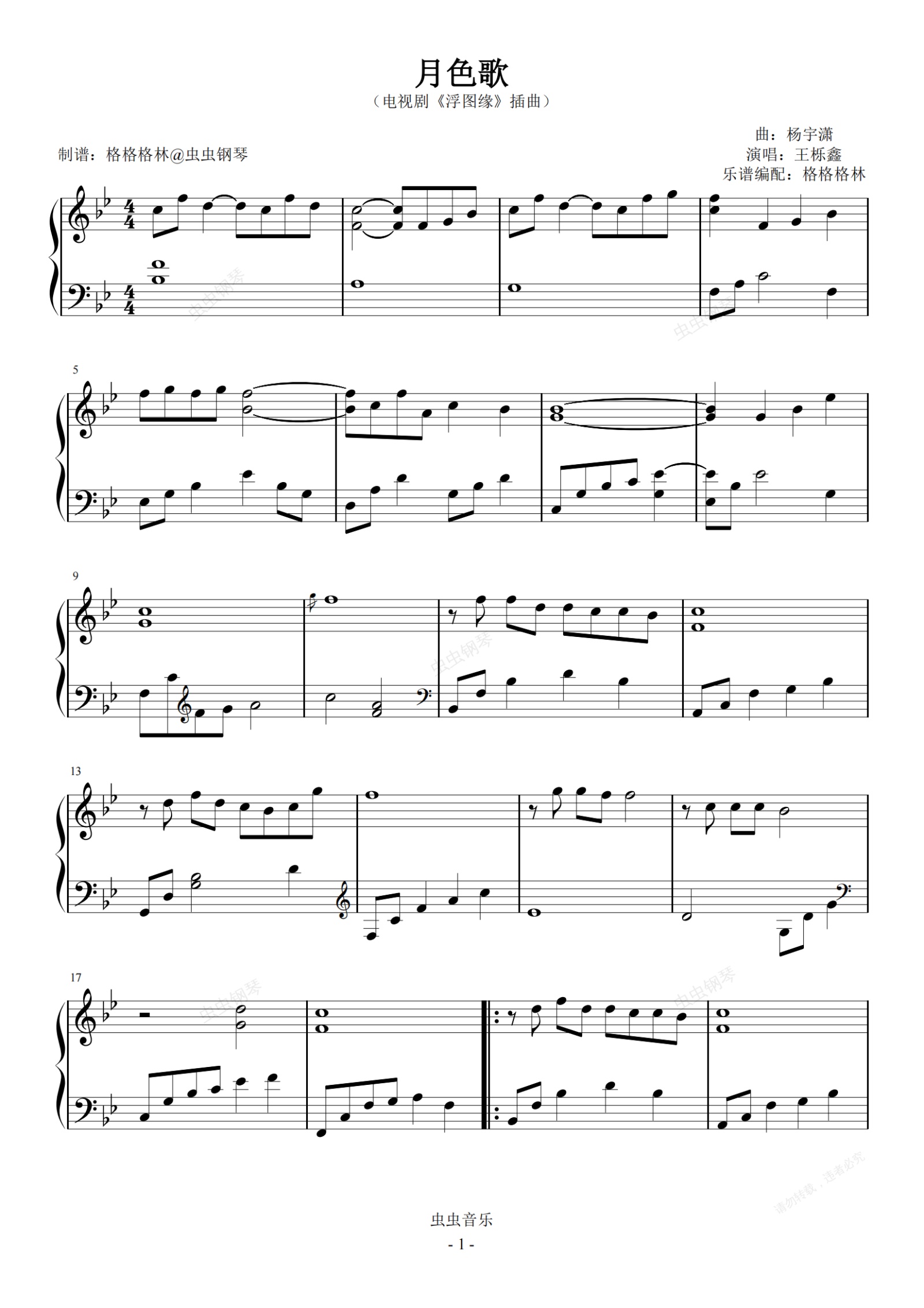 钢琴谱:月色歌(电视剧《浮图缘》插曲)-王栎鑫