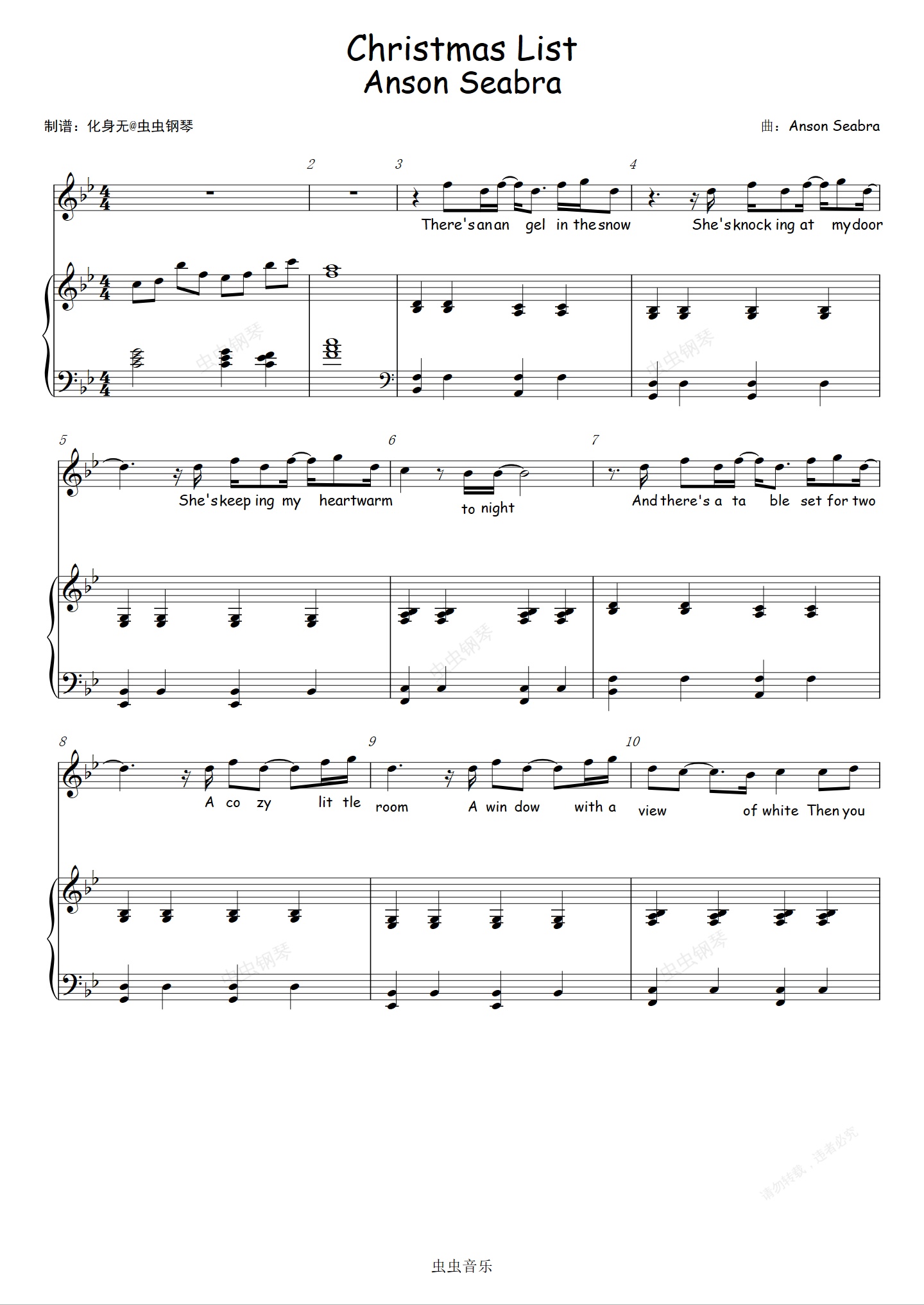 钢琴谱:弹唱版 Christmas List