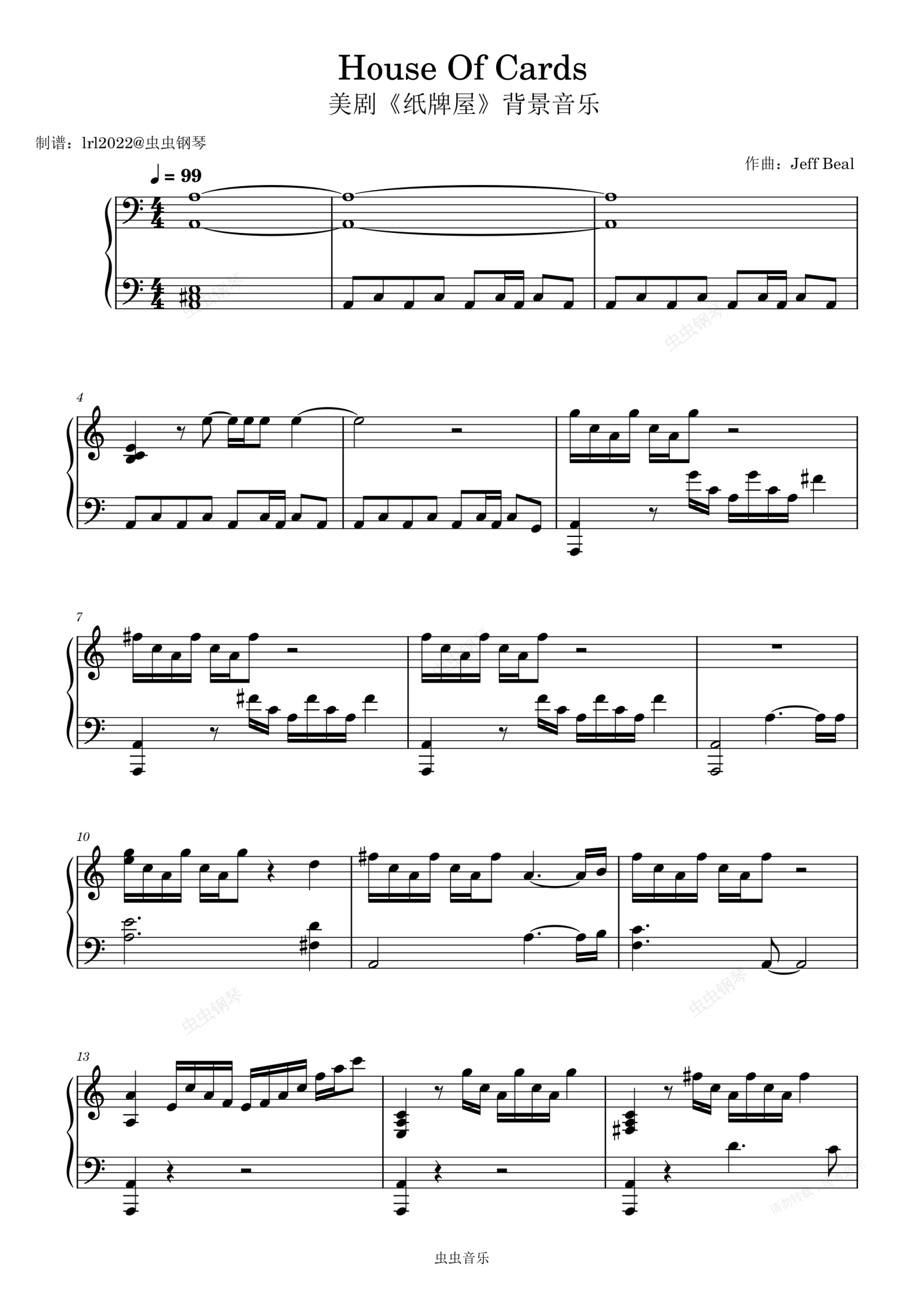 钢琴谱:House Of Cards-独奏版-纸牌屋-背景音乐