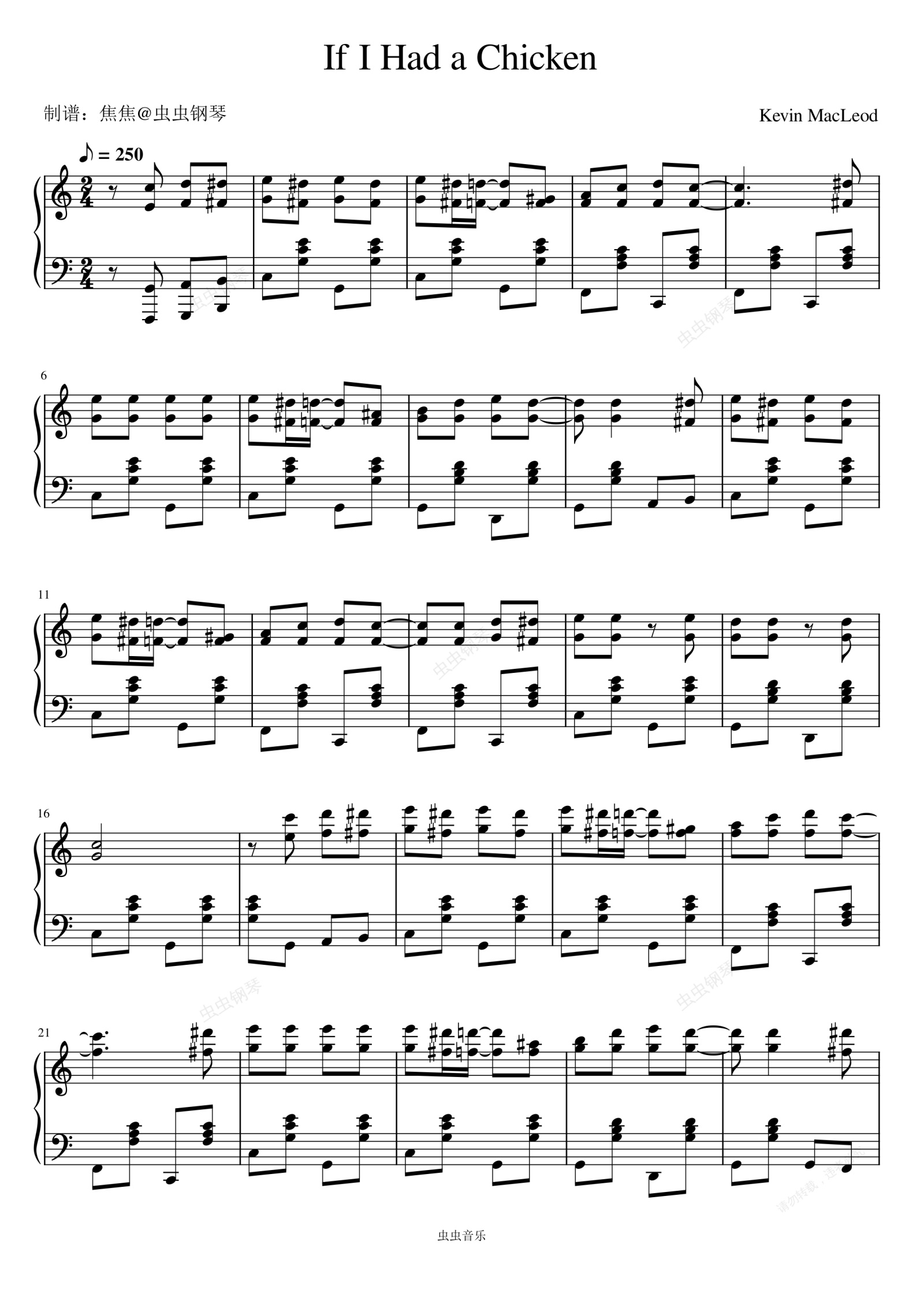 钢琴谱:If I Had a Chicken - Kevin MacLeod
