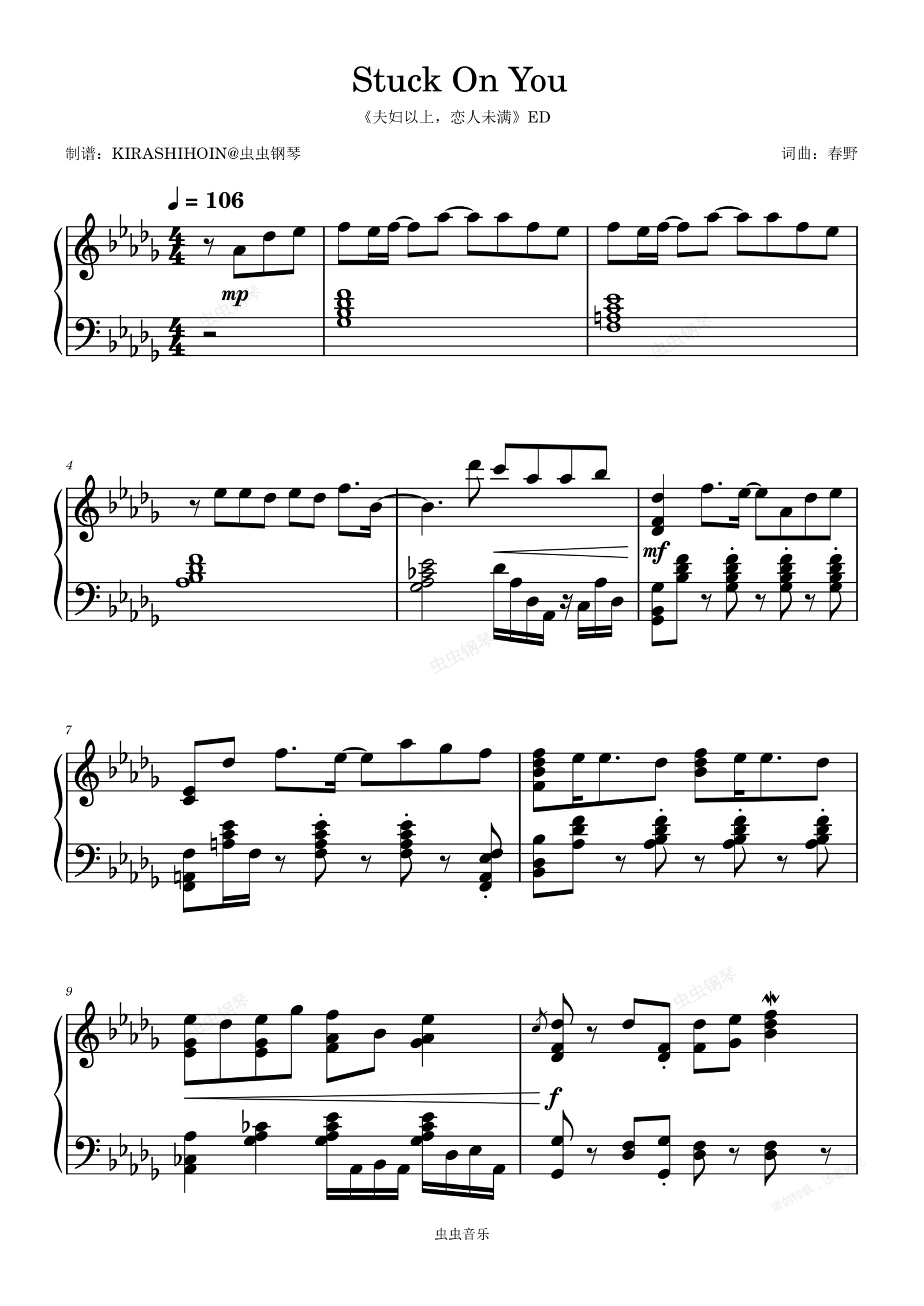 钢琴谱:Stuck On You(《夫妇以上,恋人未满》ED/片尾曲)- Nowlu
