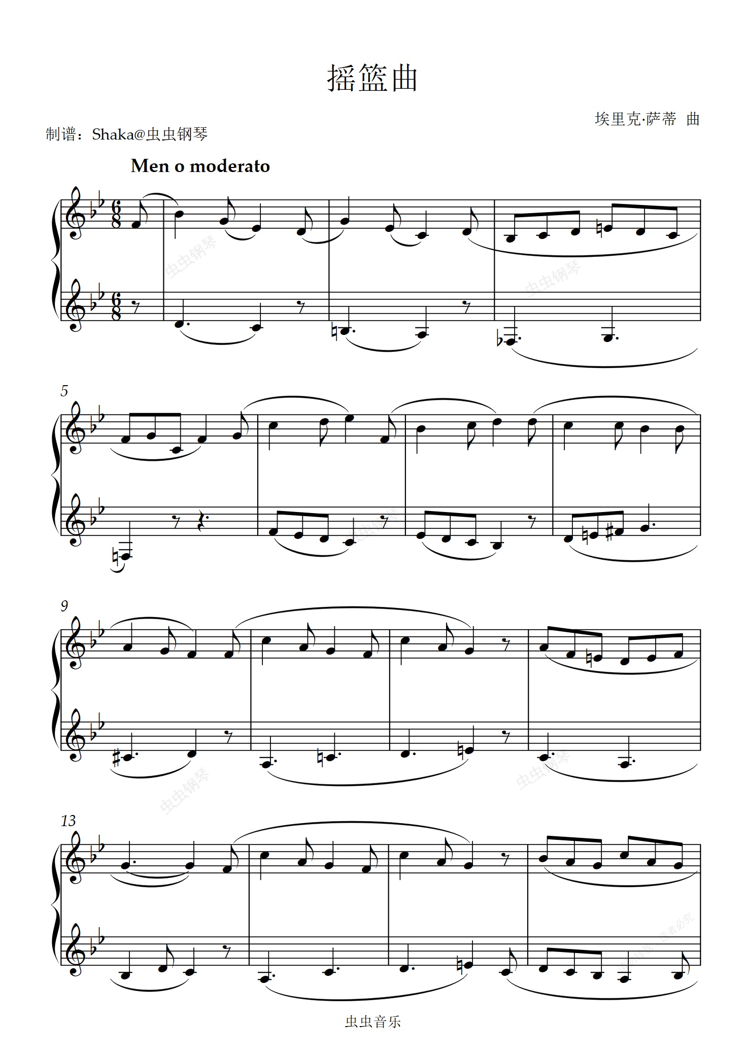 钢琴谱:摇篮曲降B调 优雅版 埃里克·萨蒂 上海音乐学院2020版2级考级曲目