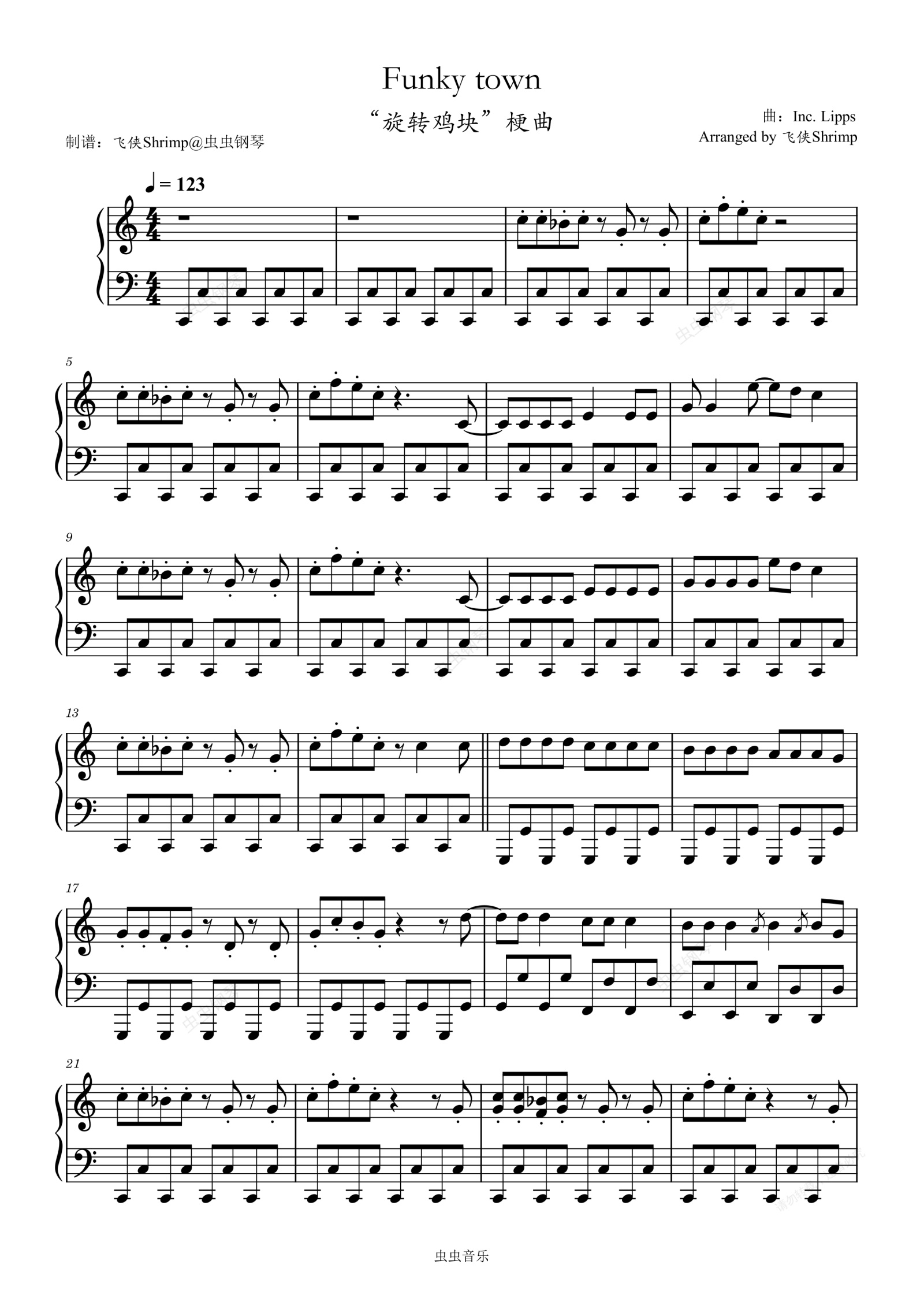 钢琴谱:Funky Town “旋转鸡块”梗曲