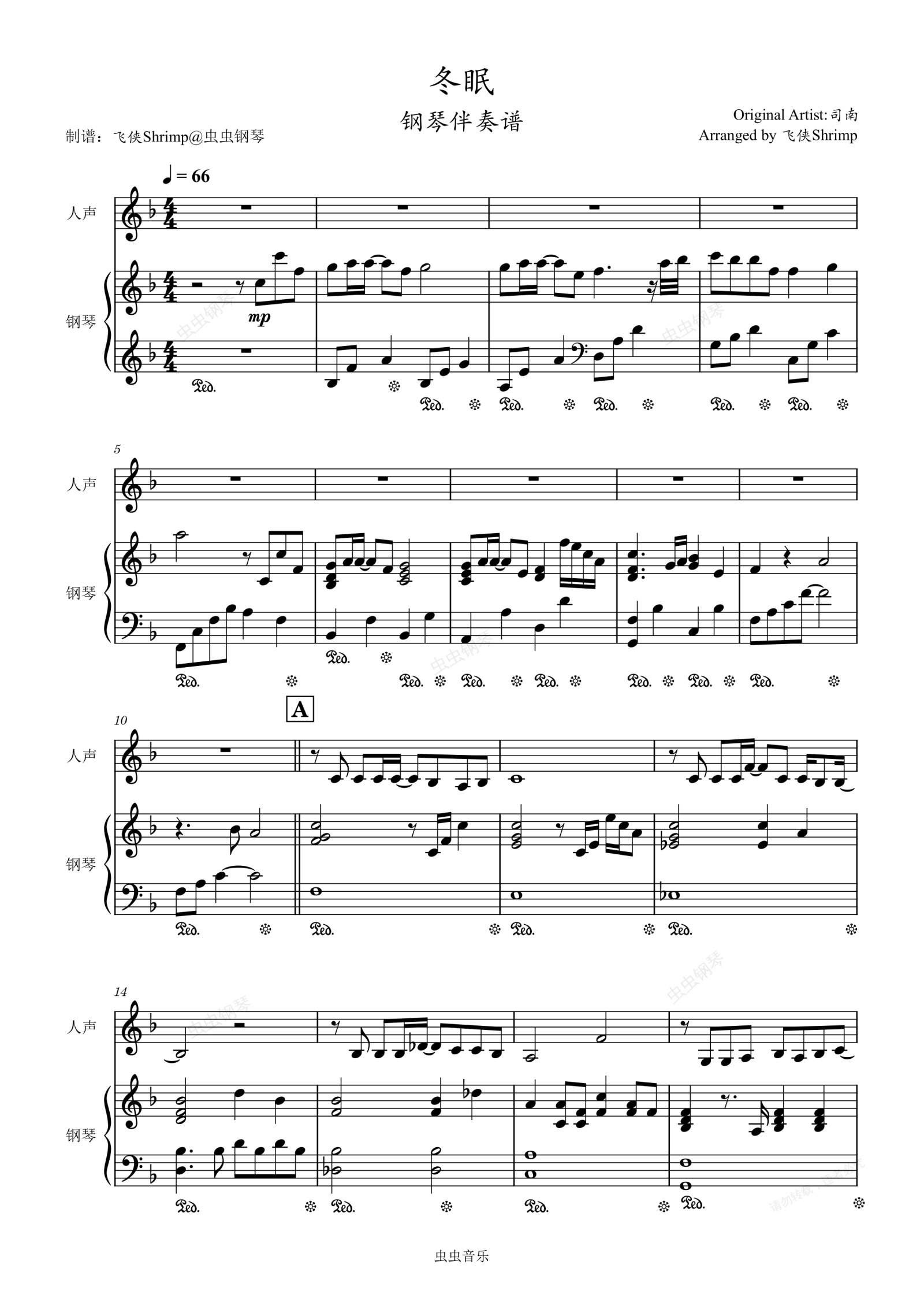 钢琴谱:冬眠·原版钢伴谱(超高还原度)