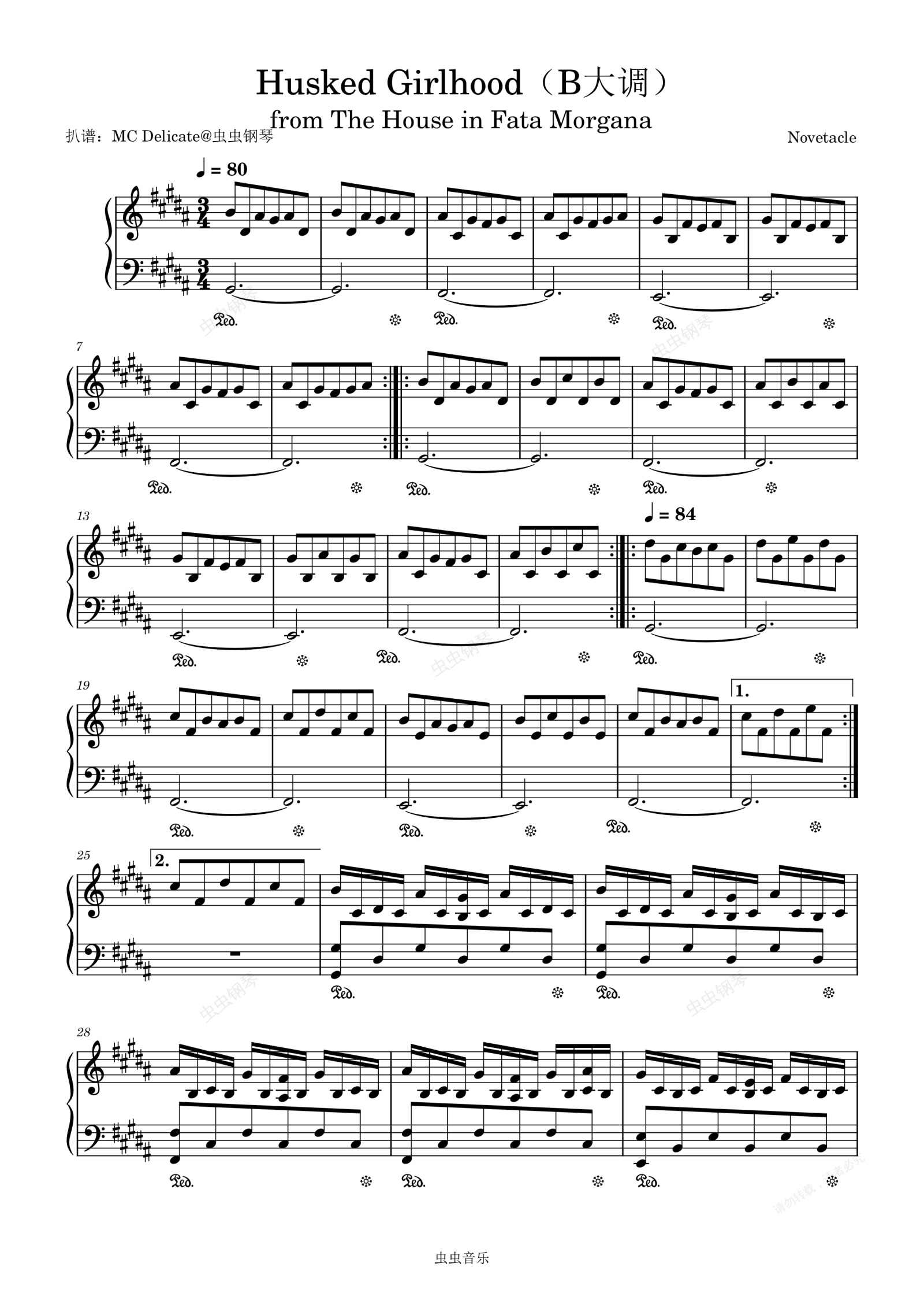 【还原度99.9%】Husked Girlhood(B大调)纯手扒钢琴谱#海市蜃楼之馆