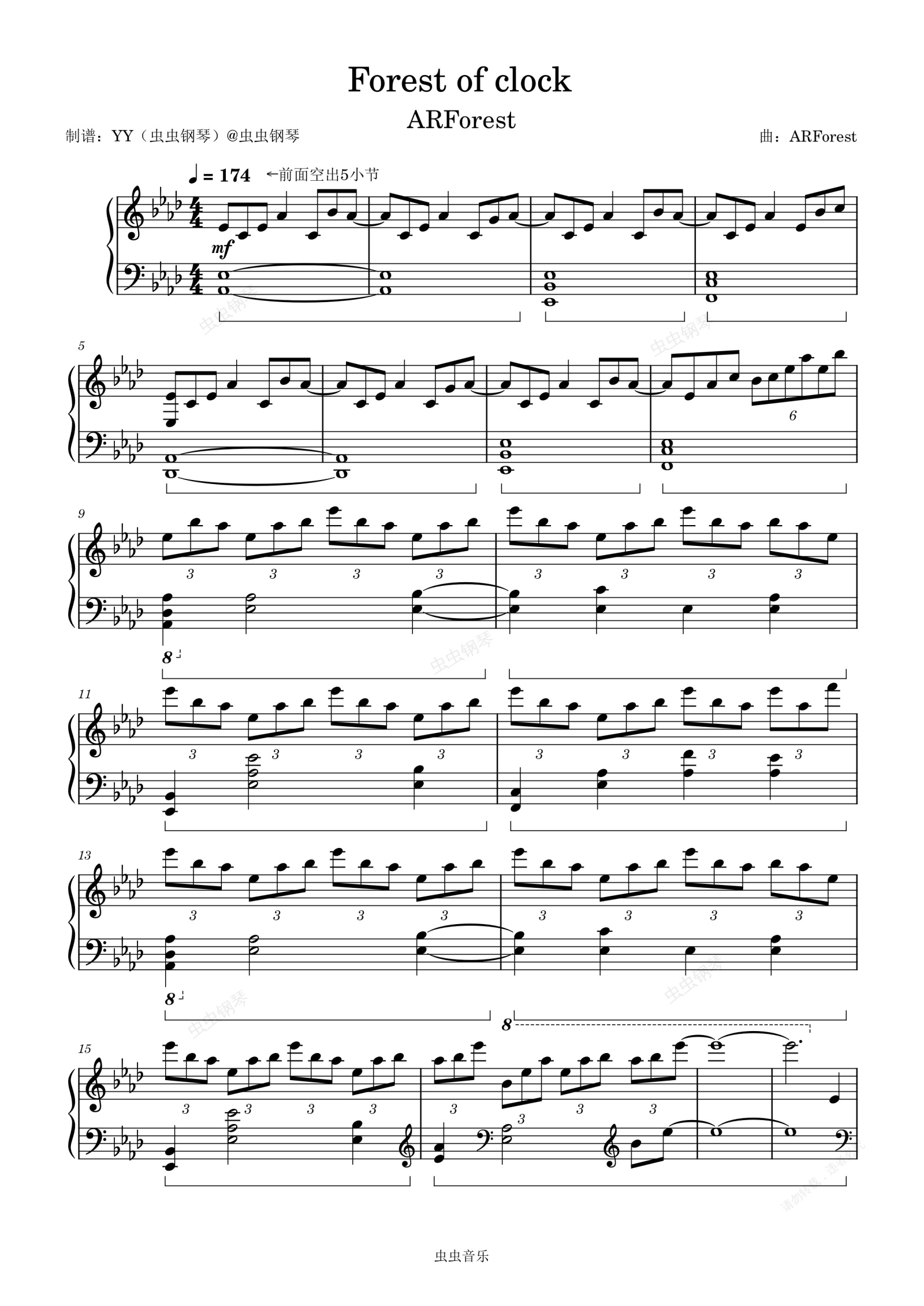 钢琴谱:[免费/读谱辅助]Forest of clock
