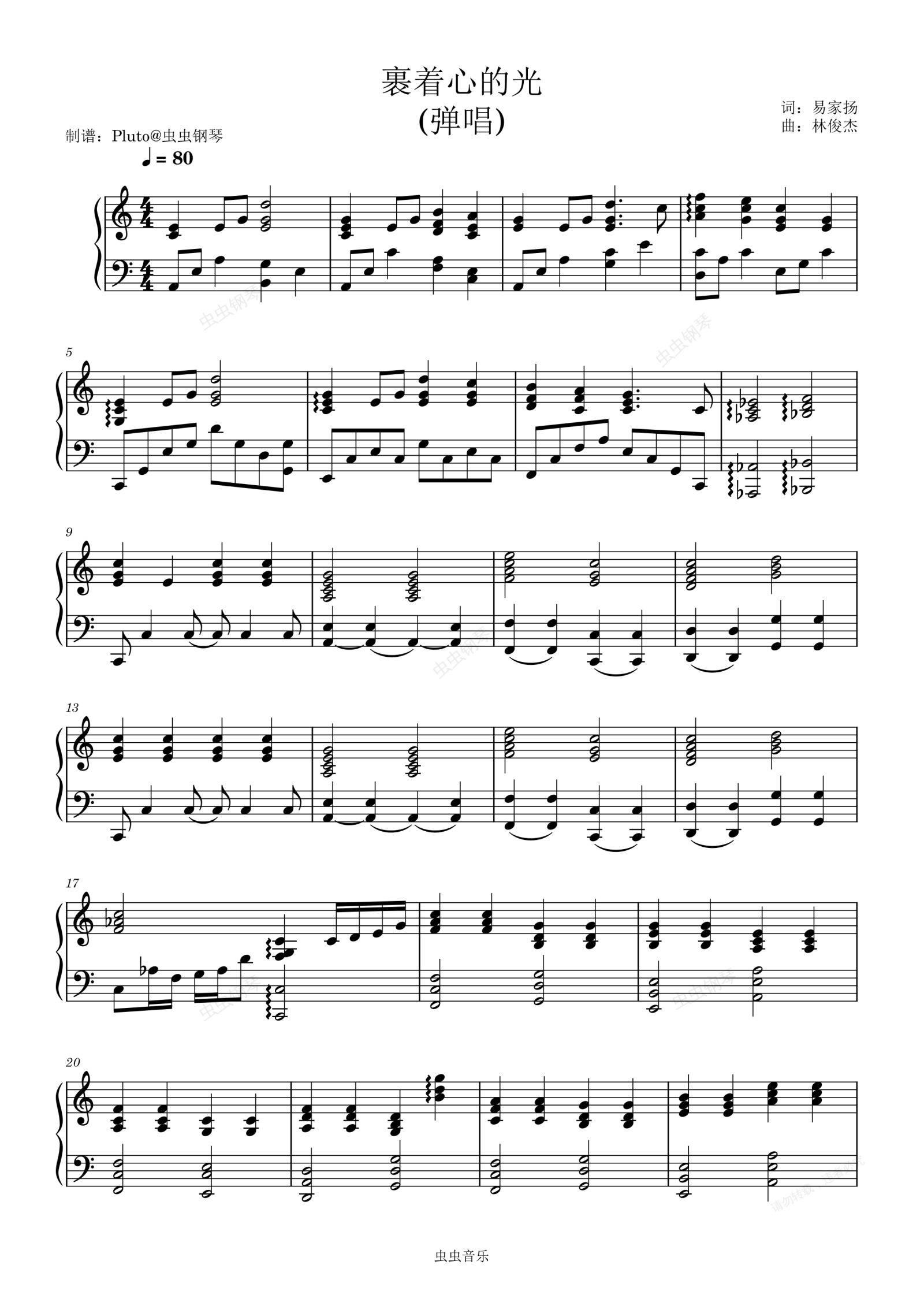 钢琴谱:裹着心的光-林俊杰-C调弹唱(可用于乐队键盘)
