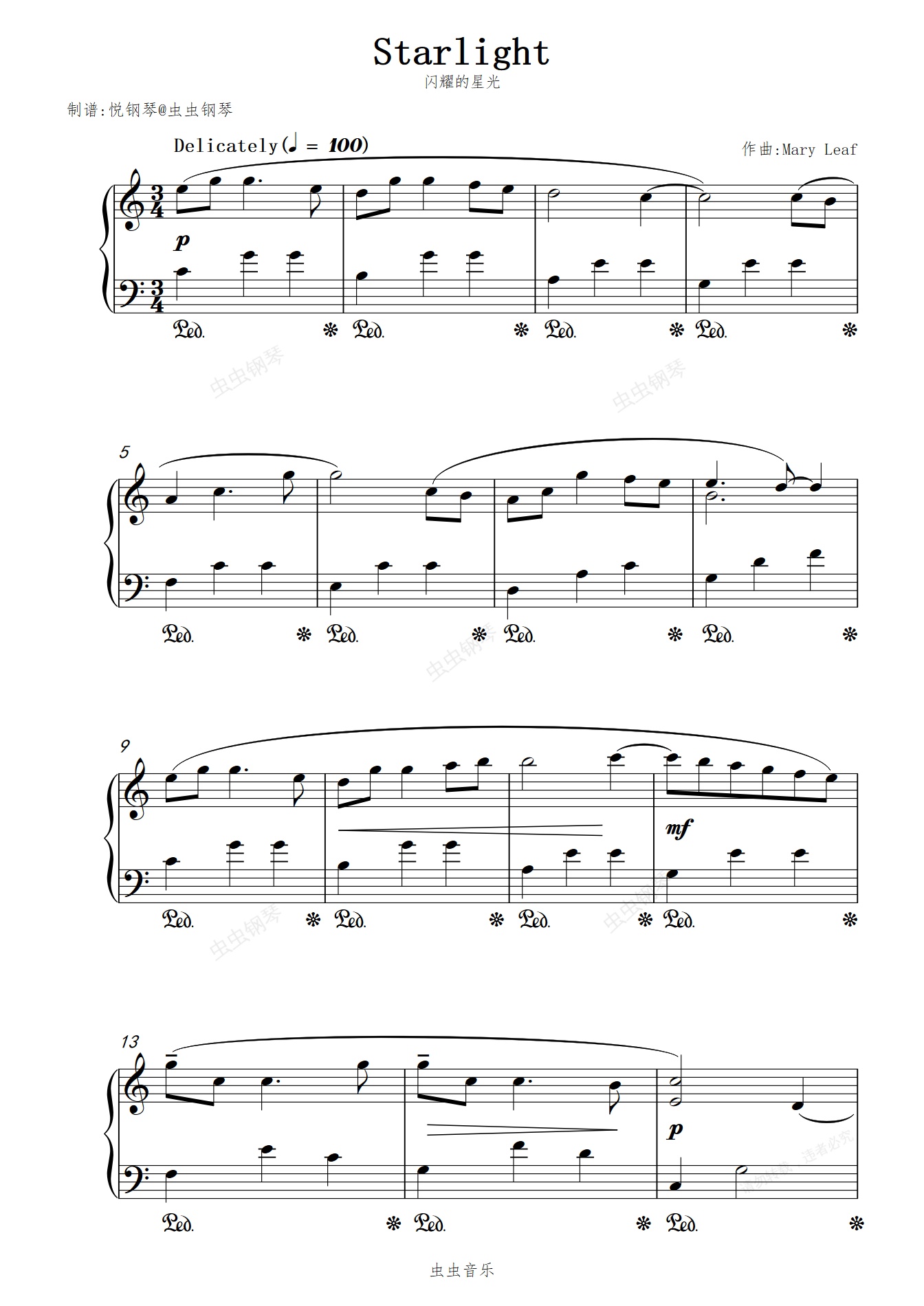 钢琴谱:闪耀的星光//Starlight【治愈小曲】