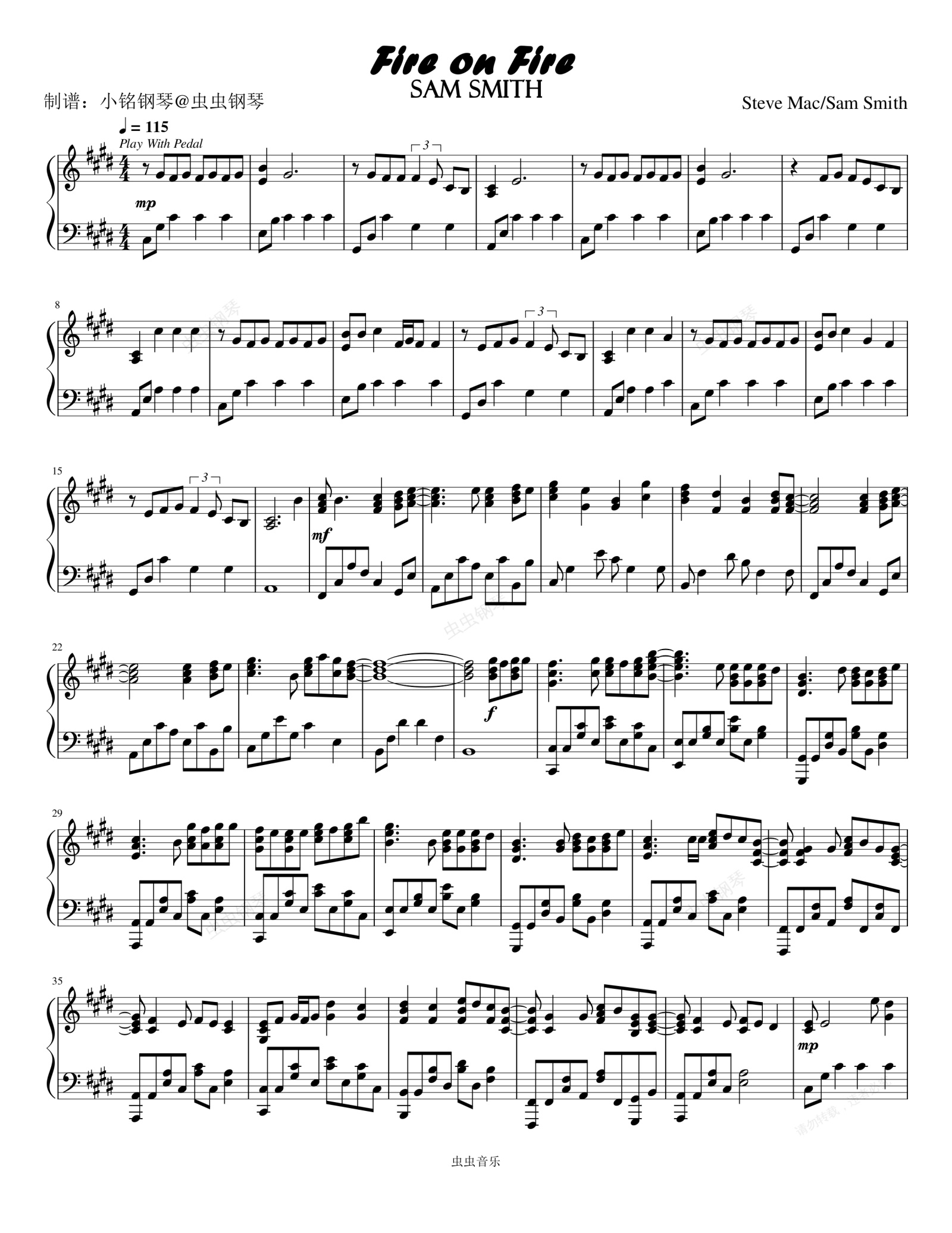 钢琴谱:Fire On Fire (From "Watership Down") - Sam Smith