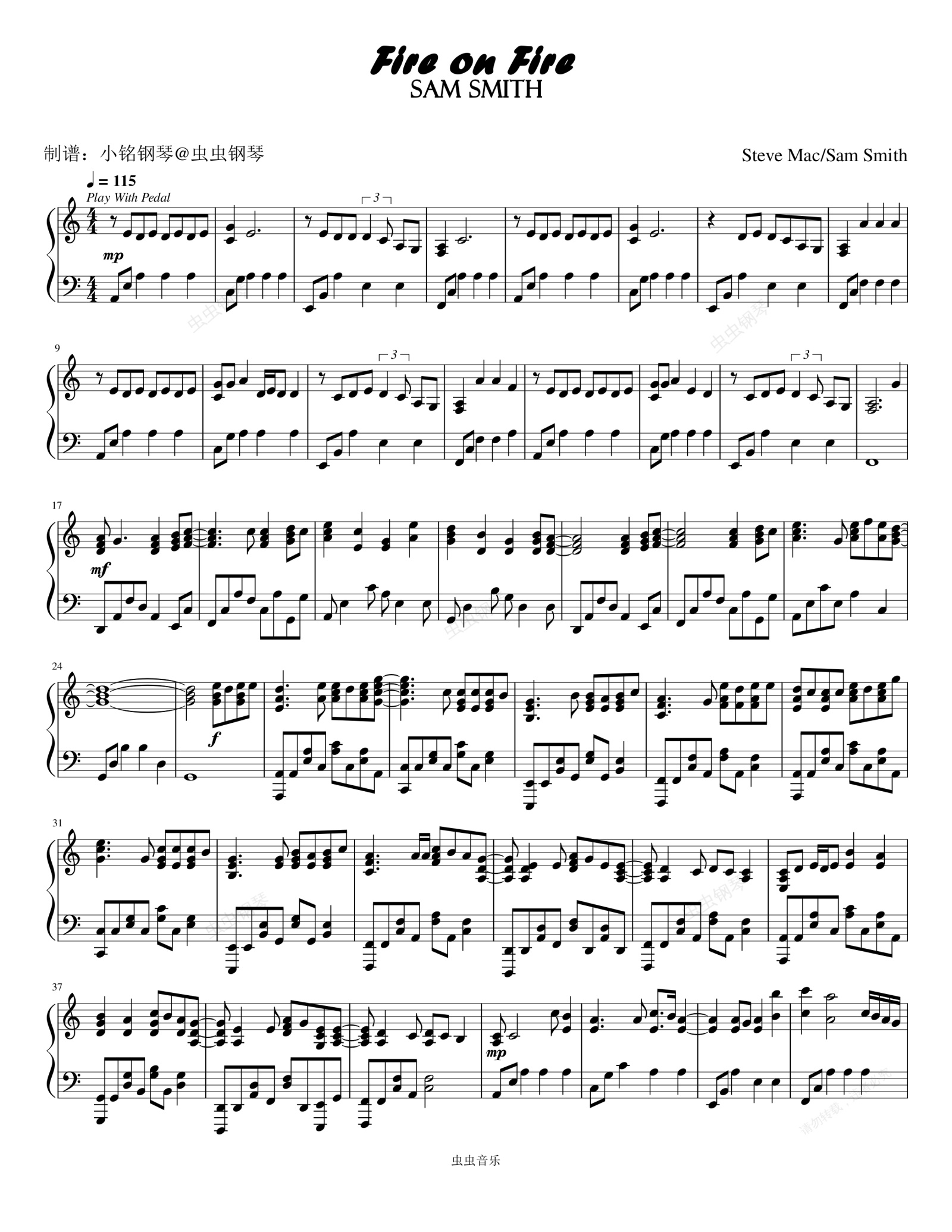 钢琴谱:Fire On Fire (From "Watership Down") - Sam Smith