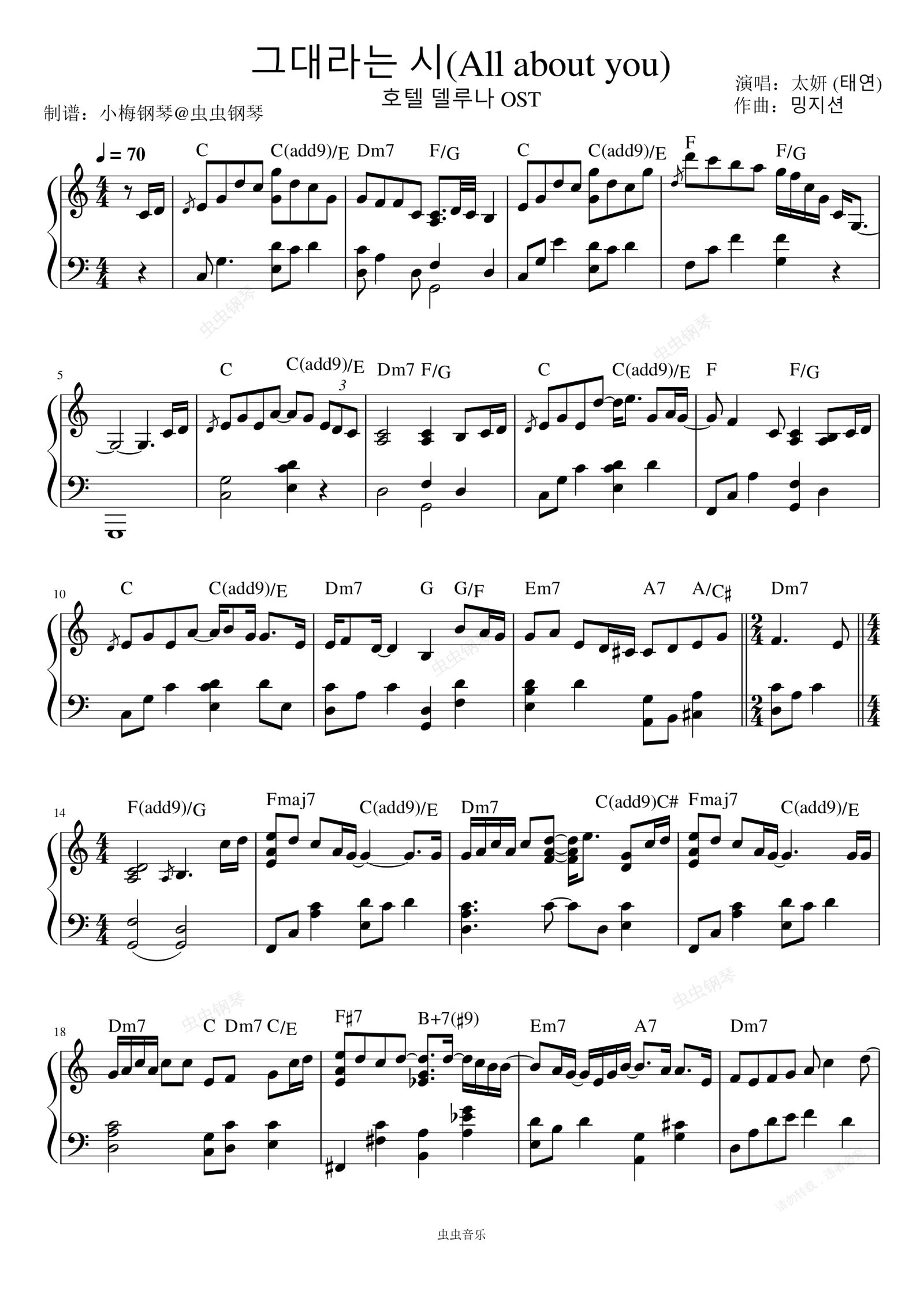 钢琴谱:그대라는 시 - 太妍 (태연)(《德鲁纳酒店》韩国电视剧主题曲)