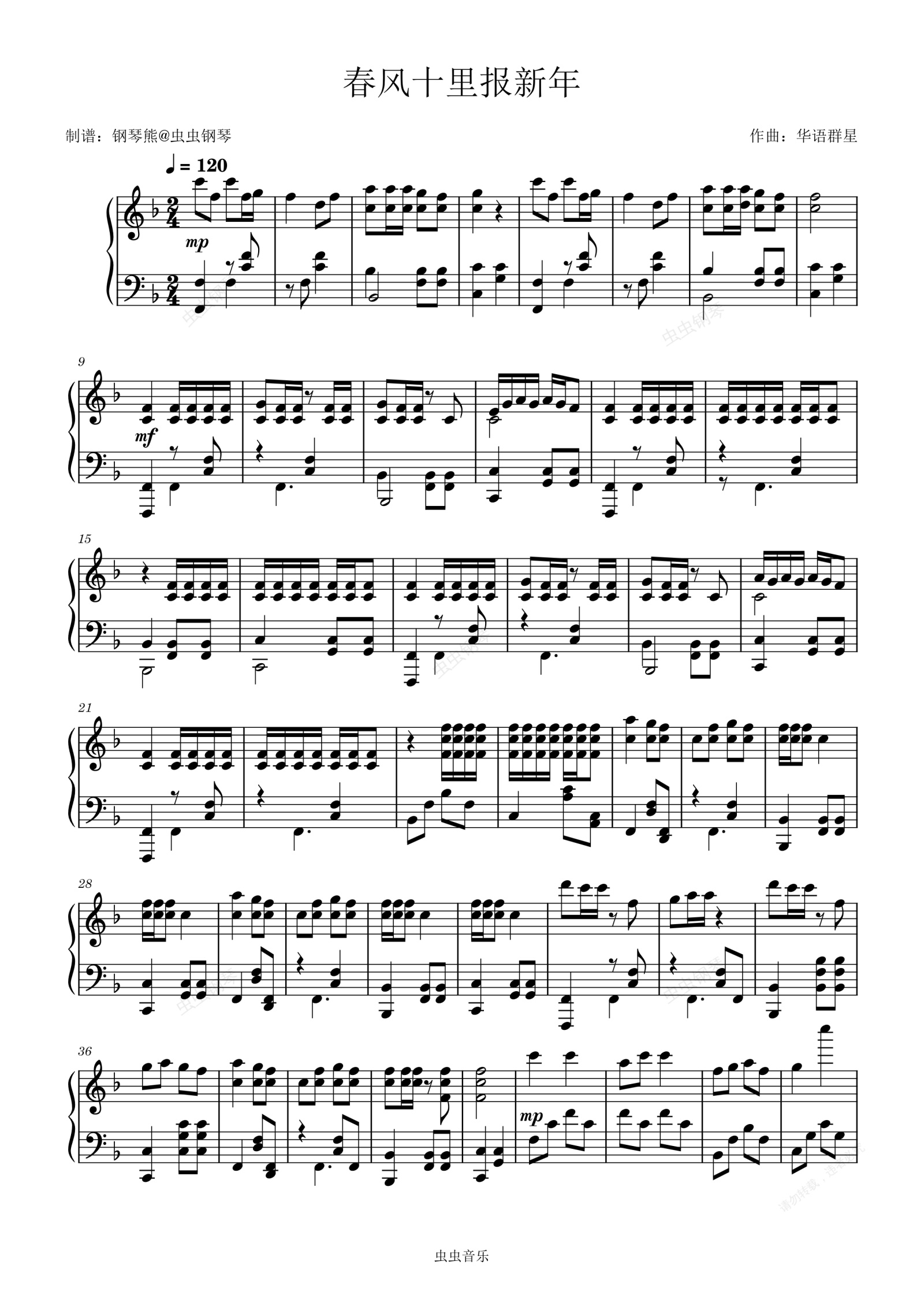 钢琴谱:《春风十里报新年》钢琴极致还原版~粉丝点谱成功~喜欢的兄弟记得点点小红心👇👇👇哦~