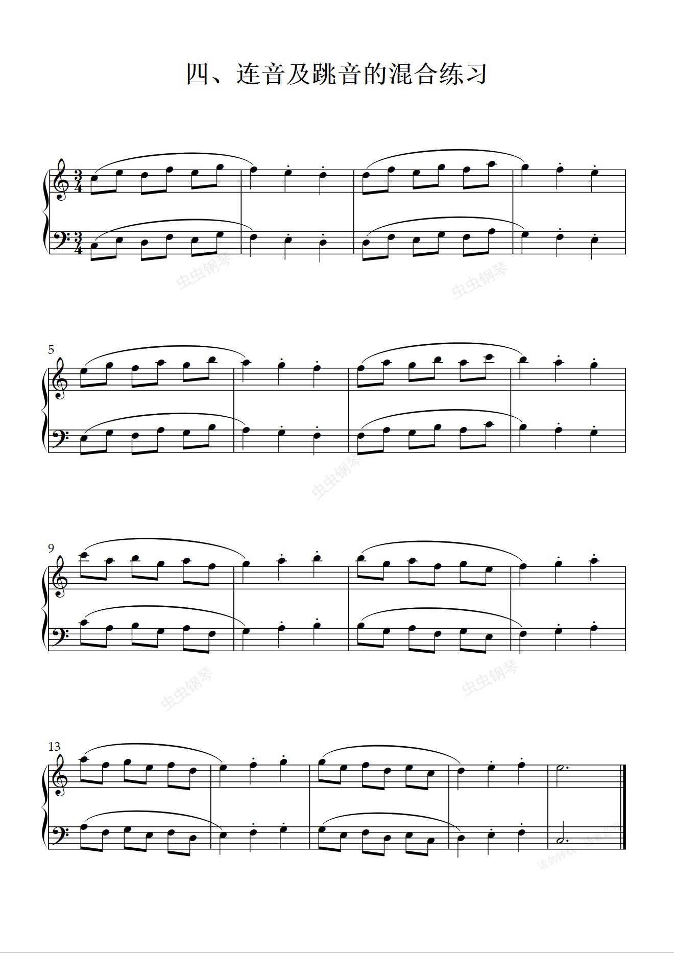 钢琴谱:四、连音及跳音的混合练习