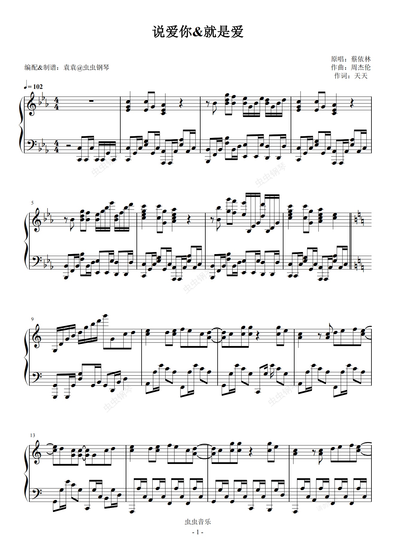 钢琴谱:说爱你&就是爱 欢快演奏版 降E大调
