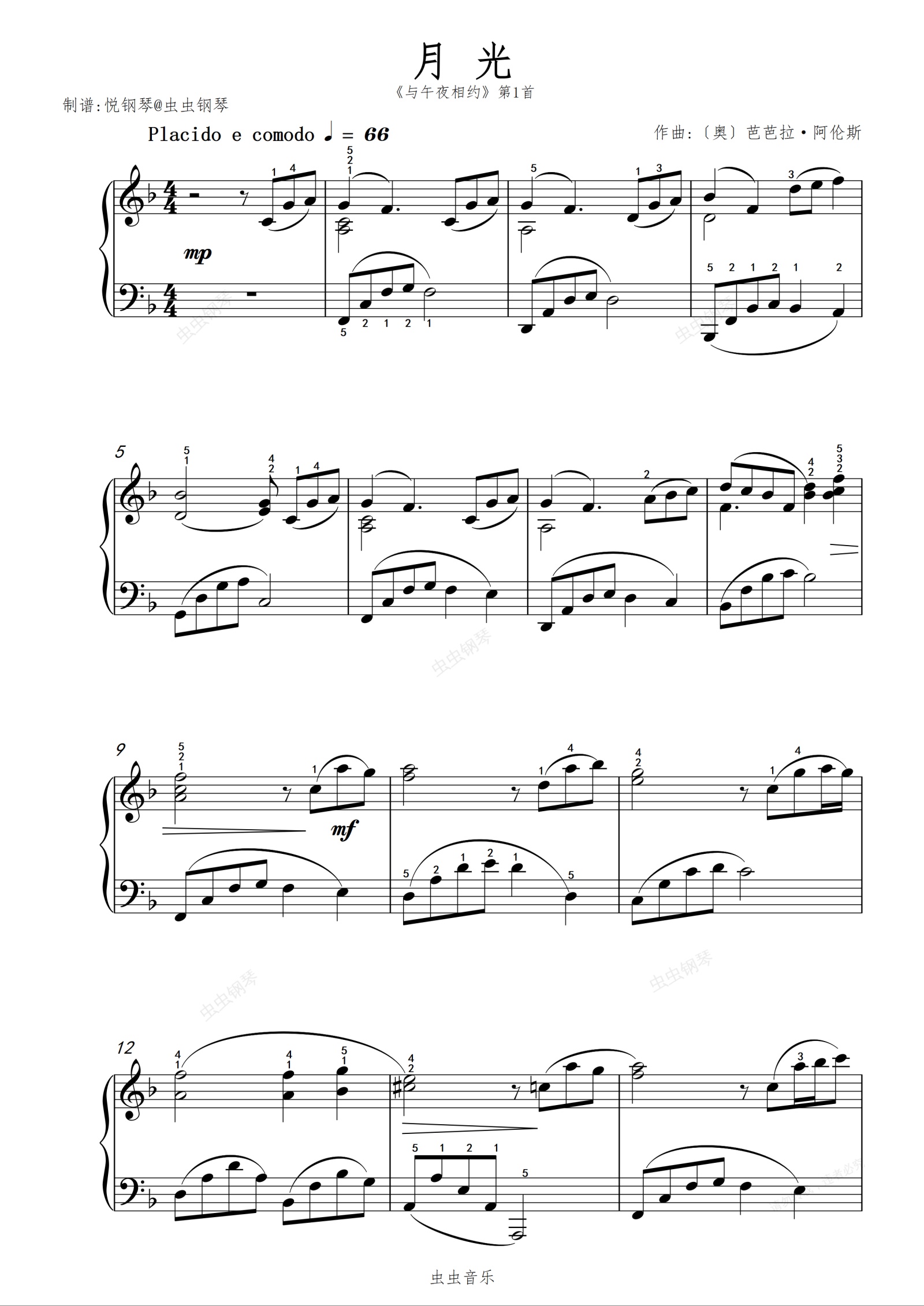 钢琴谱:月光【治愈小曲】